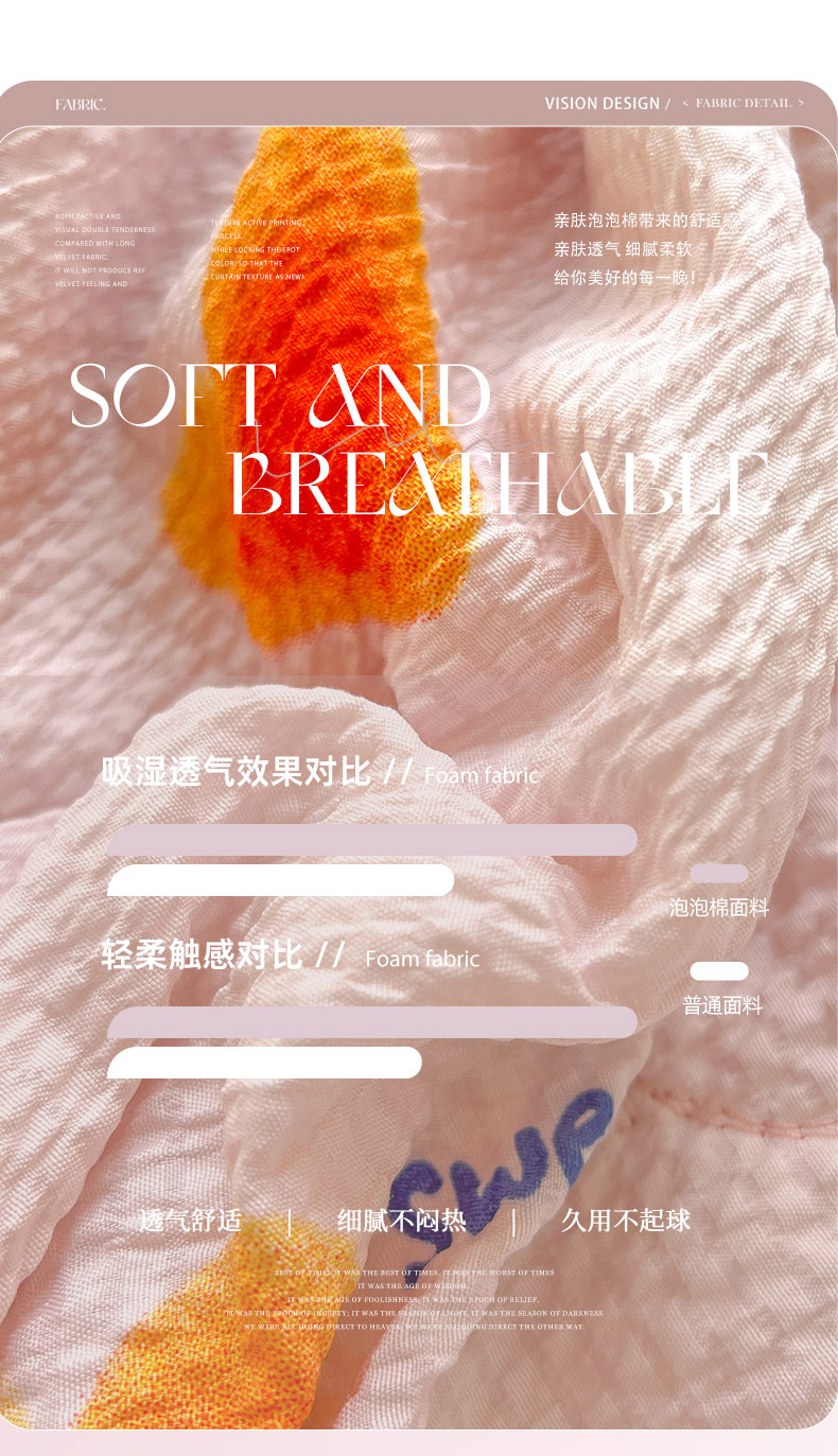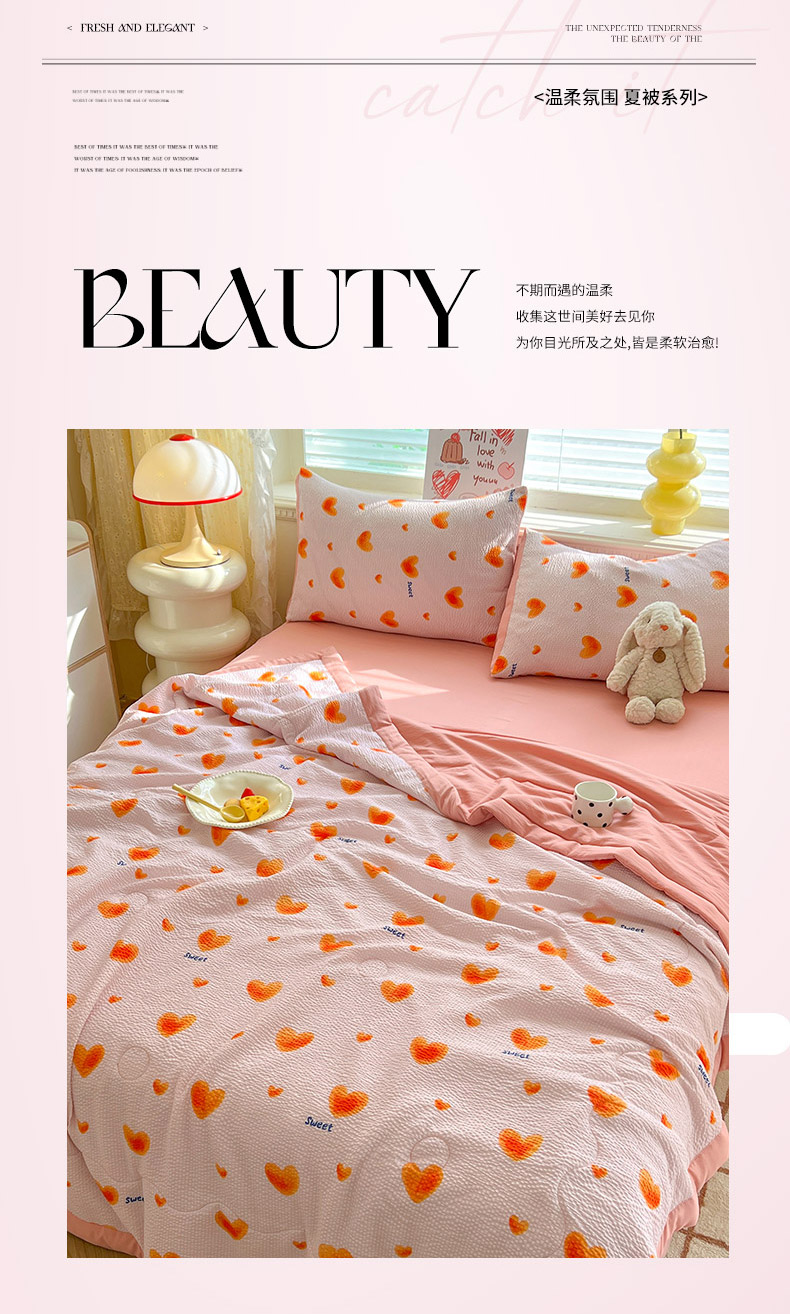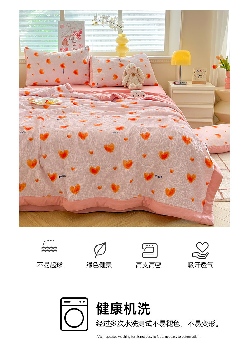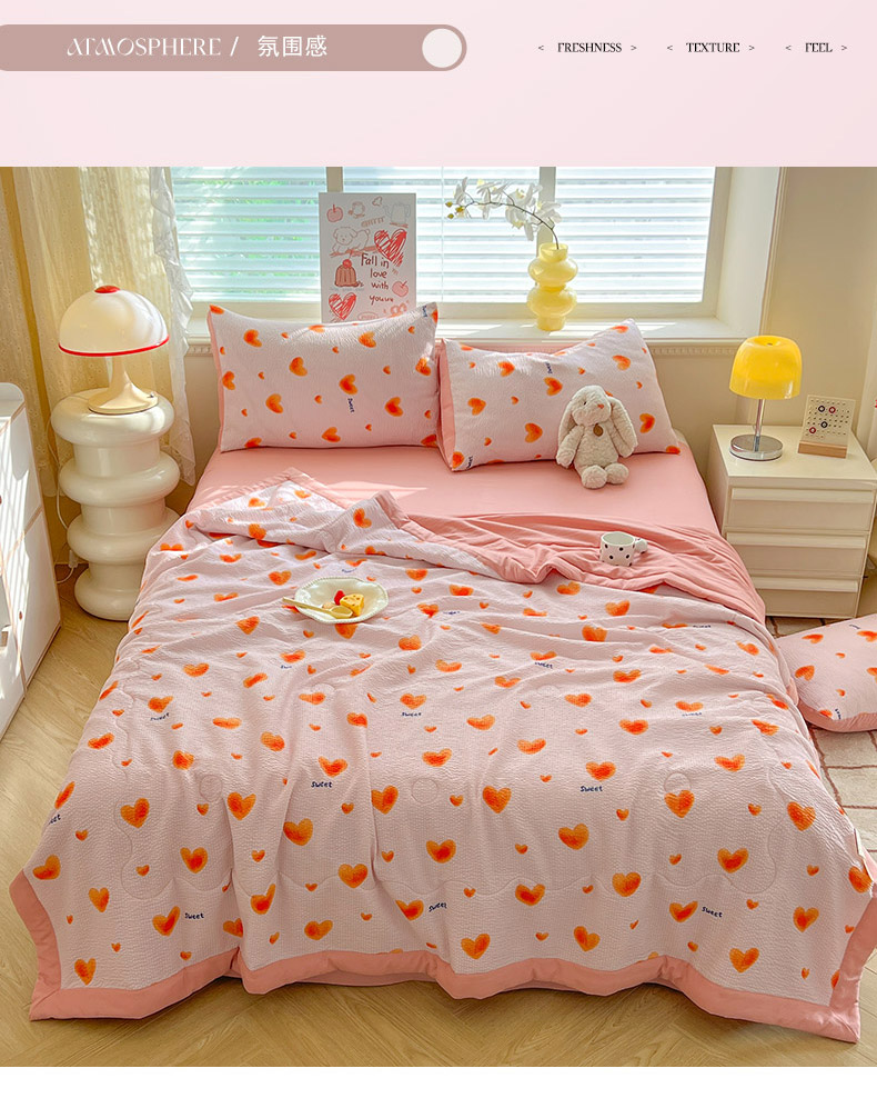 商品名称:妖妖家纺 2024新款有氧水洗泡泡棉印花四套泡芙棉夏被四件套 心动