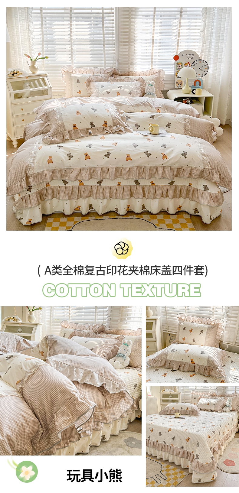 当前位置: 91家纺网 > 商品网购 > 床品套件 > 四件套 > 全棉普通四件套 > 宜凡家纺 2024新款全棉复古印花床盖四件套 玩具小熊