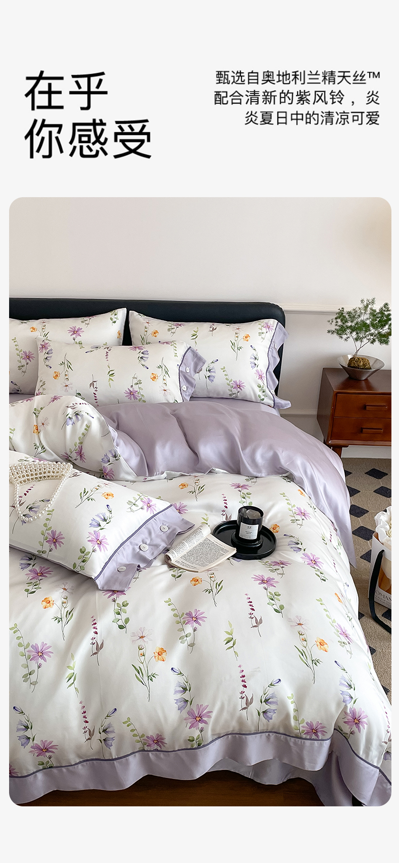 (总)西西家居2023新款奥地利兰精天丝四件套,天丝-紫风铃