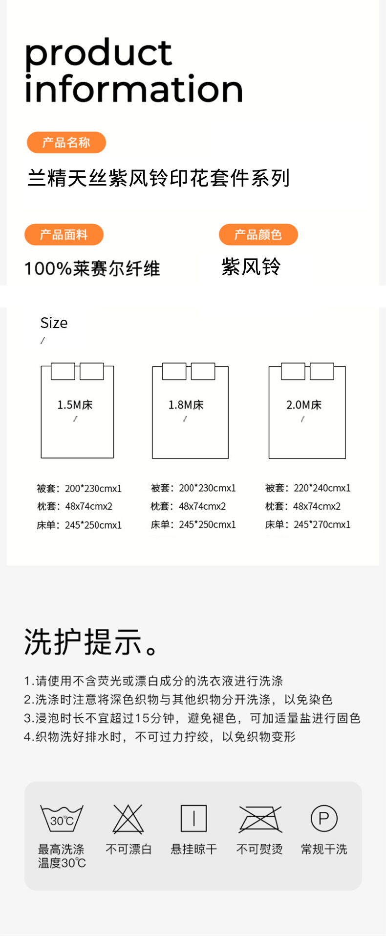 商品名称:西西家居 2024新款兰精天丝数码款套件 紫风铃