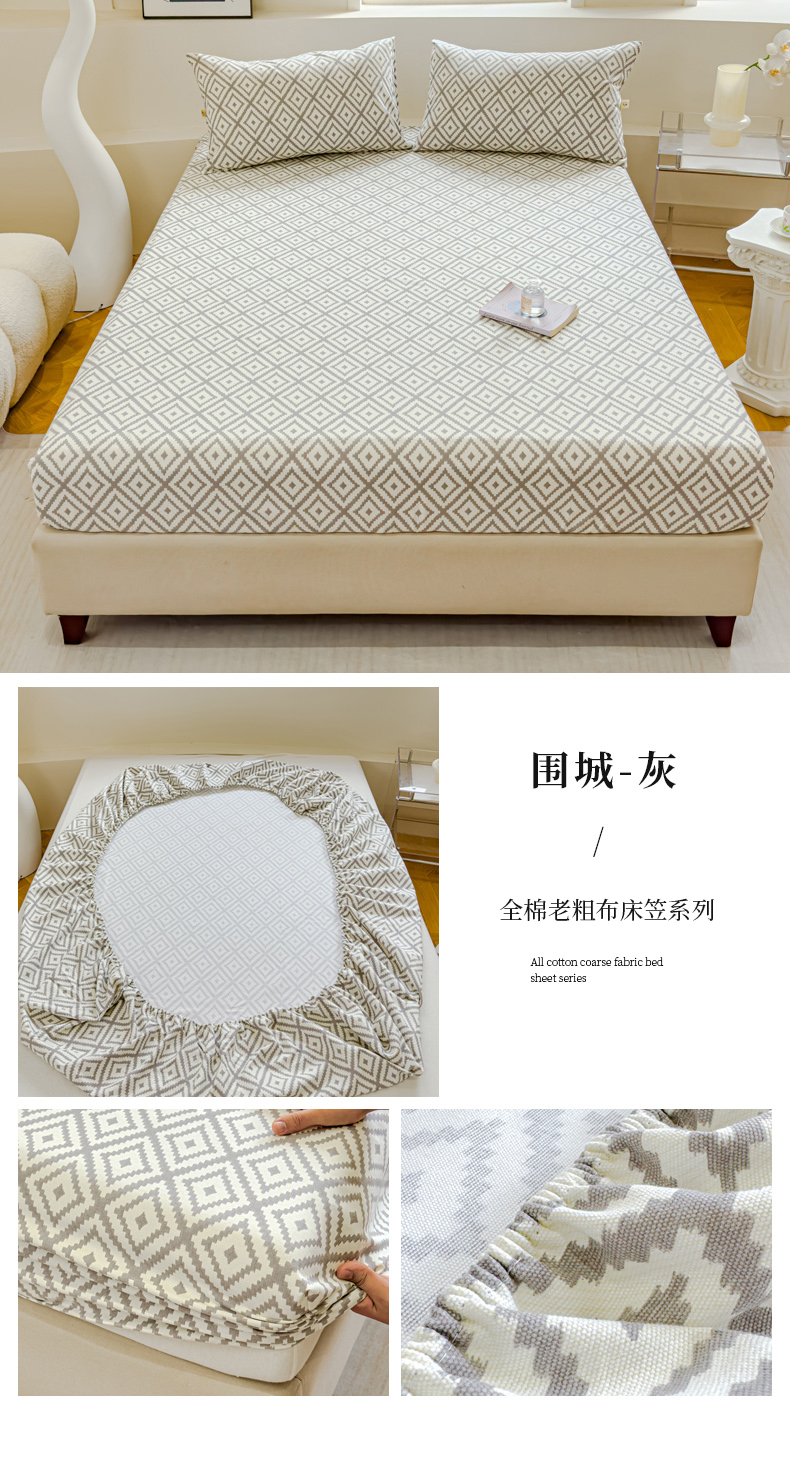 • 91家纺网 家纺一手货源 找家纺 金丝鸟家纺 2024新款成人款A类老粗布床笠 围城 灰