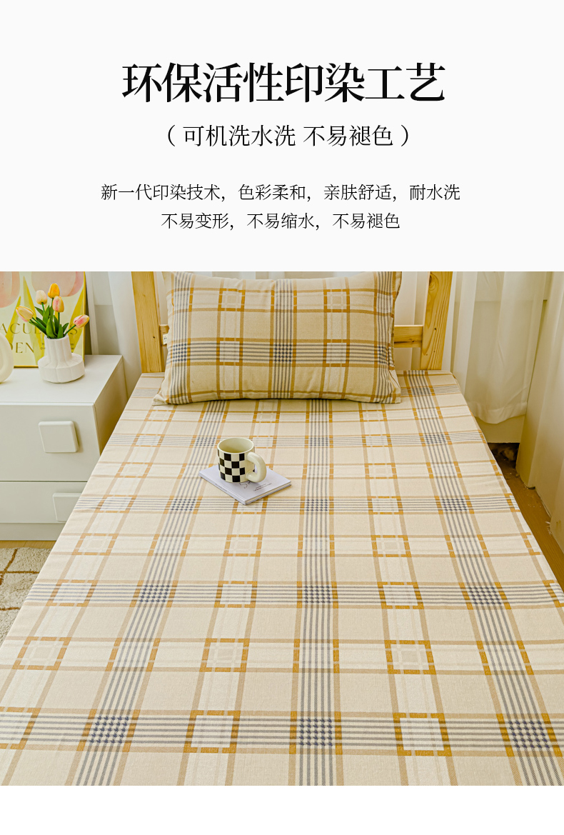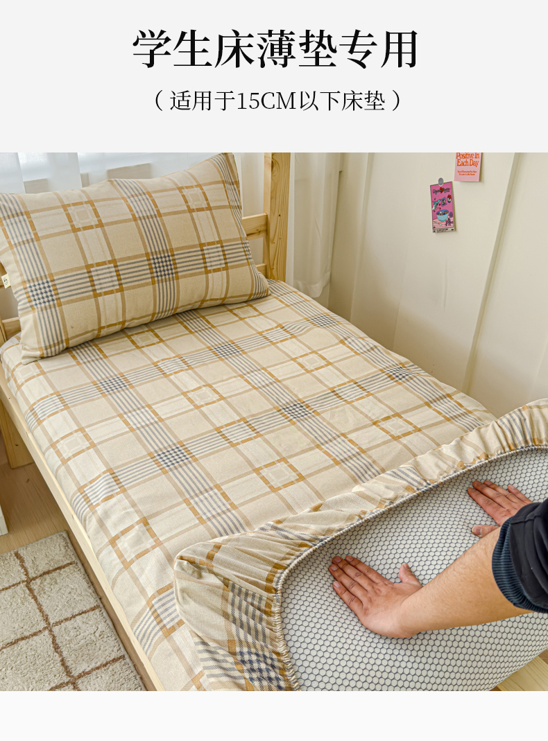 • 91家纺网 家纺一手货源 找家纺 金丝鸟家纺 2024新款学生款A类老粗布床笠 咖小格
