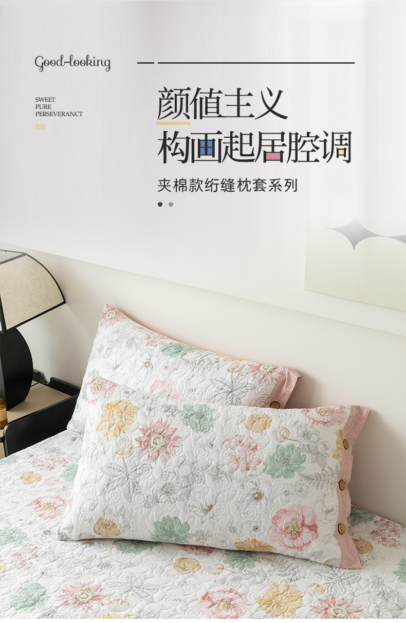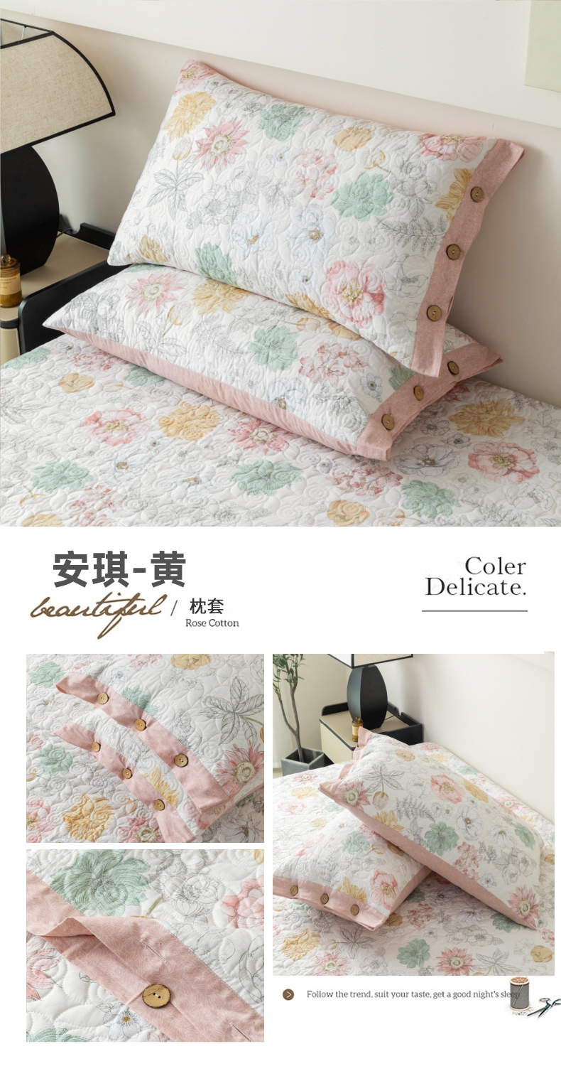 商品名称:优乐家纺 2025新款纯棉印花夹棉枕套系列-纽扣款 安琪-黄
