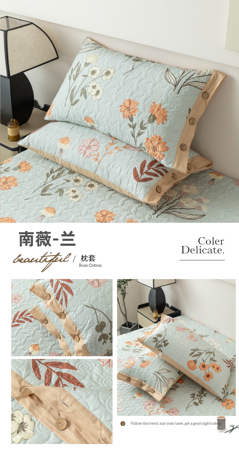 商品名称:优乐家纺 2025新款纯棉印花夹棉枕套系列-纽扣款 南薇-兰