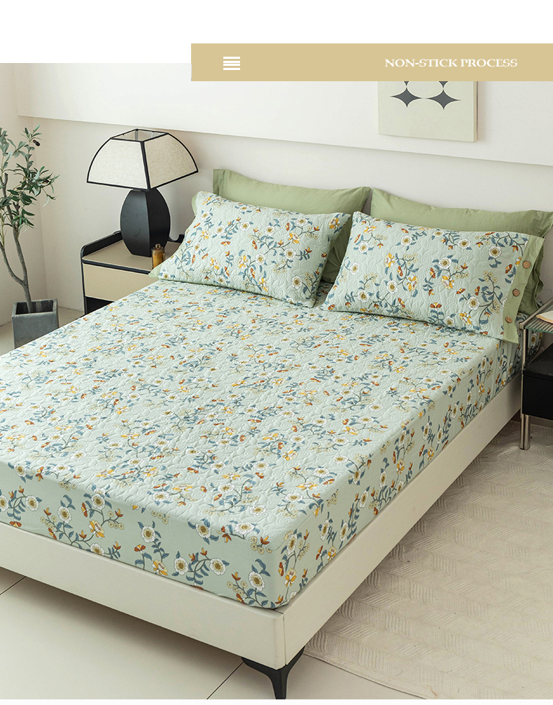 优乐家纺 2025新款纯棉印花夹棉床笠三件套系列-纽扣款 朵唯