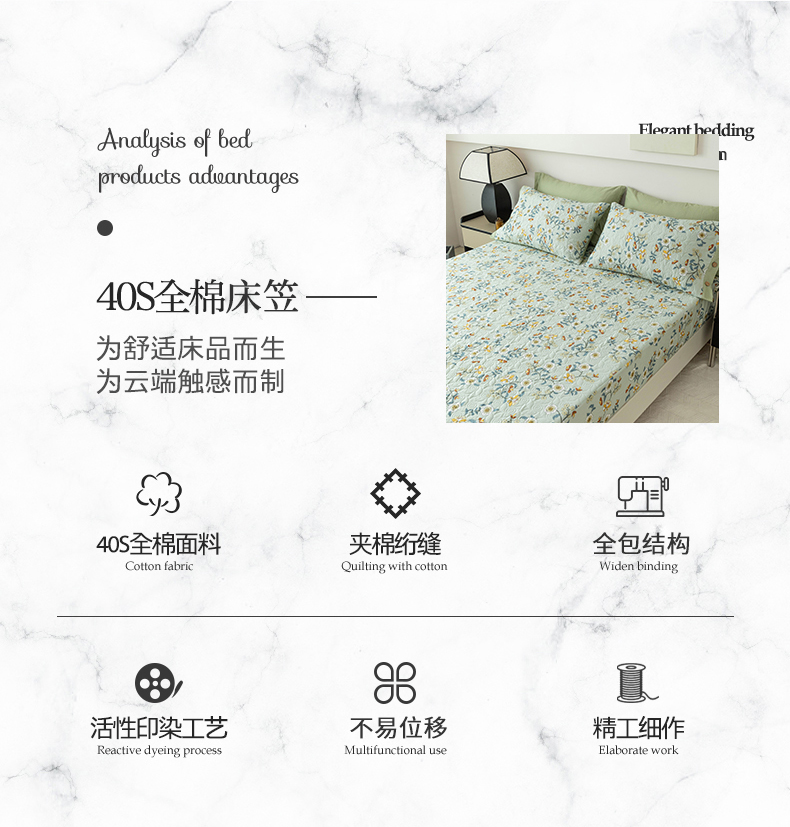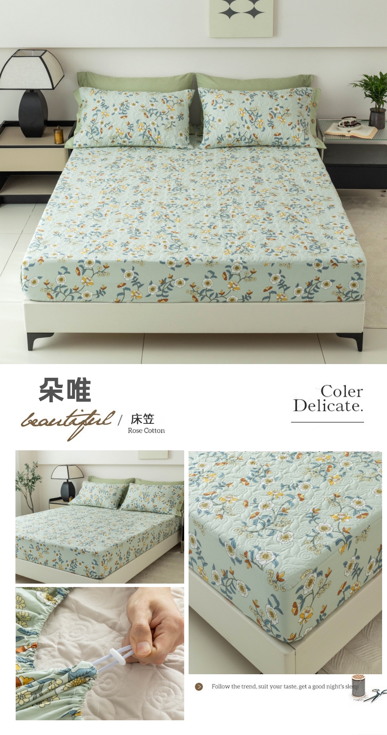 商品名称:优乐家纺 2025新款纯棉印花夹棉床笠三件套系列-纽扣款 朵唯