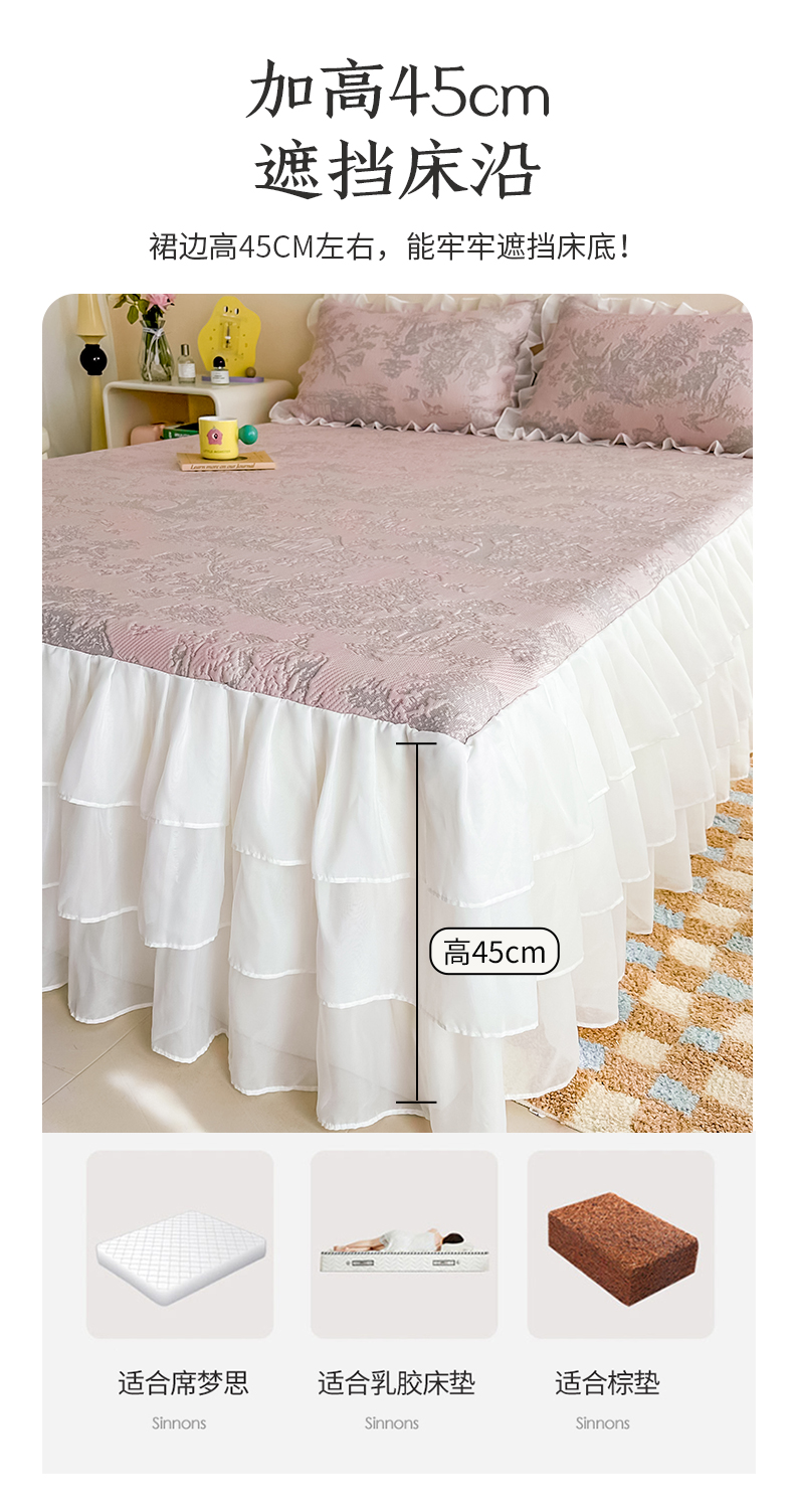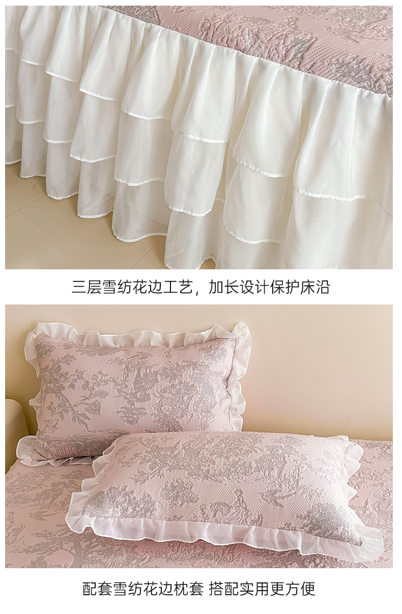 (总)屹成家纺2025新款水晶绒夹棉绗缝蕾丝床裙三件套(塞纳河畔)床裙单件起售价不低于105元,大红,豆沙,翡翠绿,粉玉,橄榄绿,蔚蓝,银灰