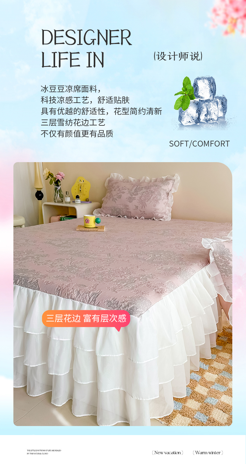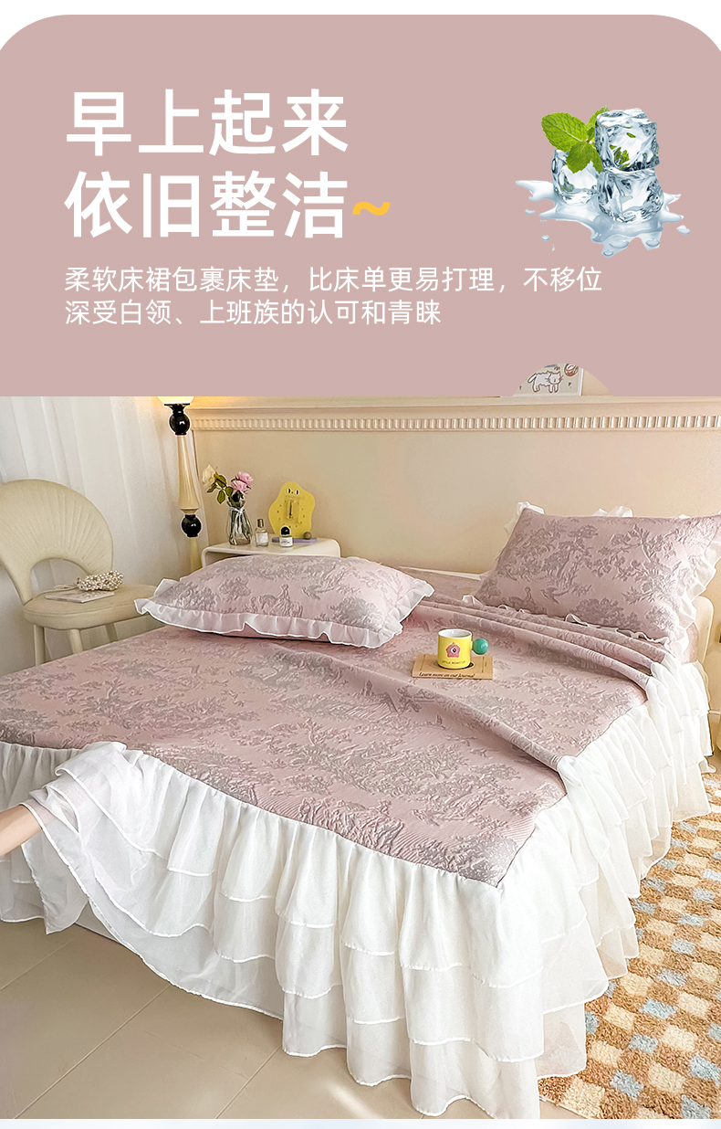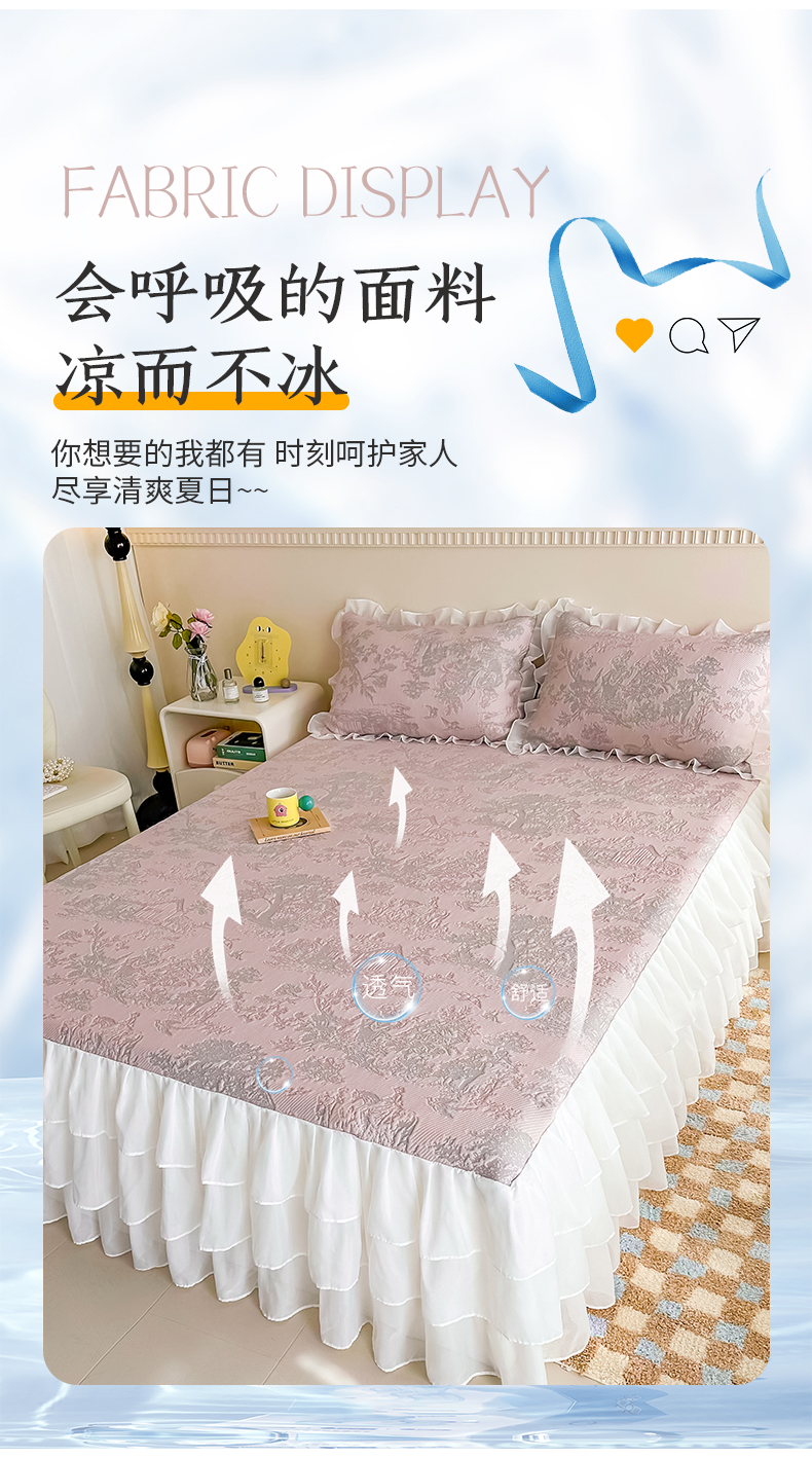 屹成家纺 2024新款PE高分子冰丝凉席床裙款 爱丽丝-粉