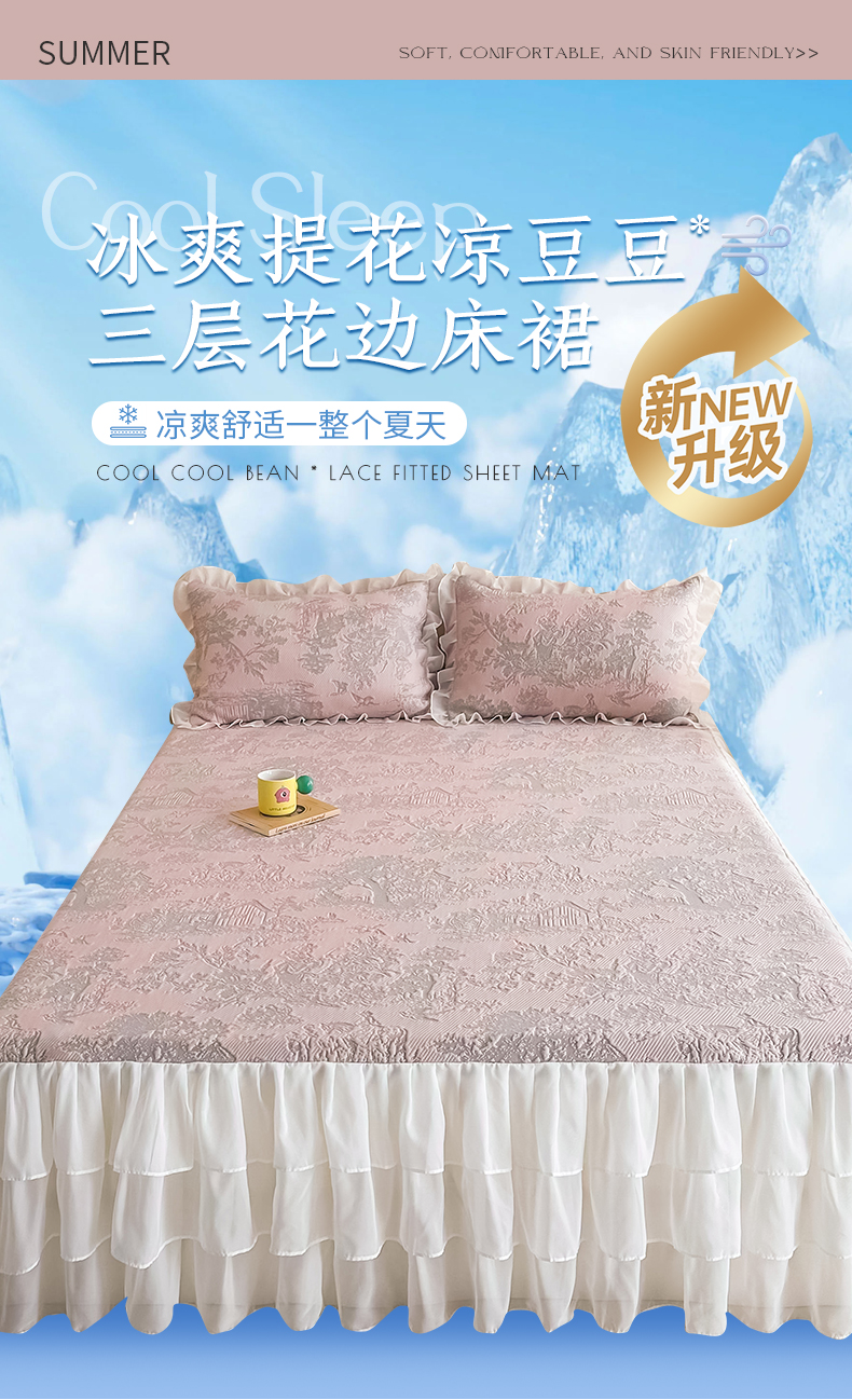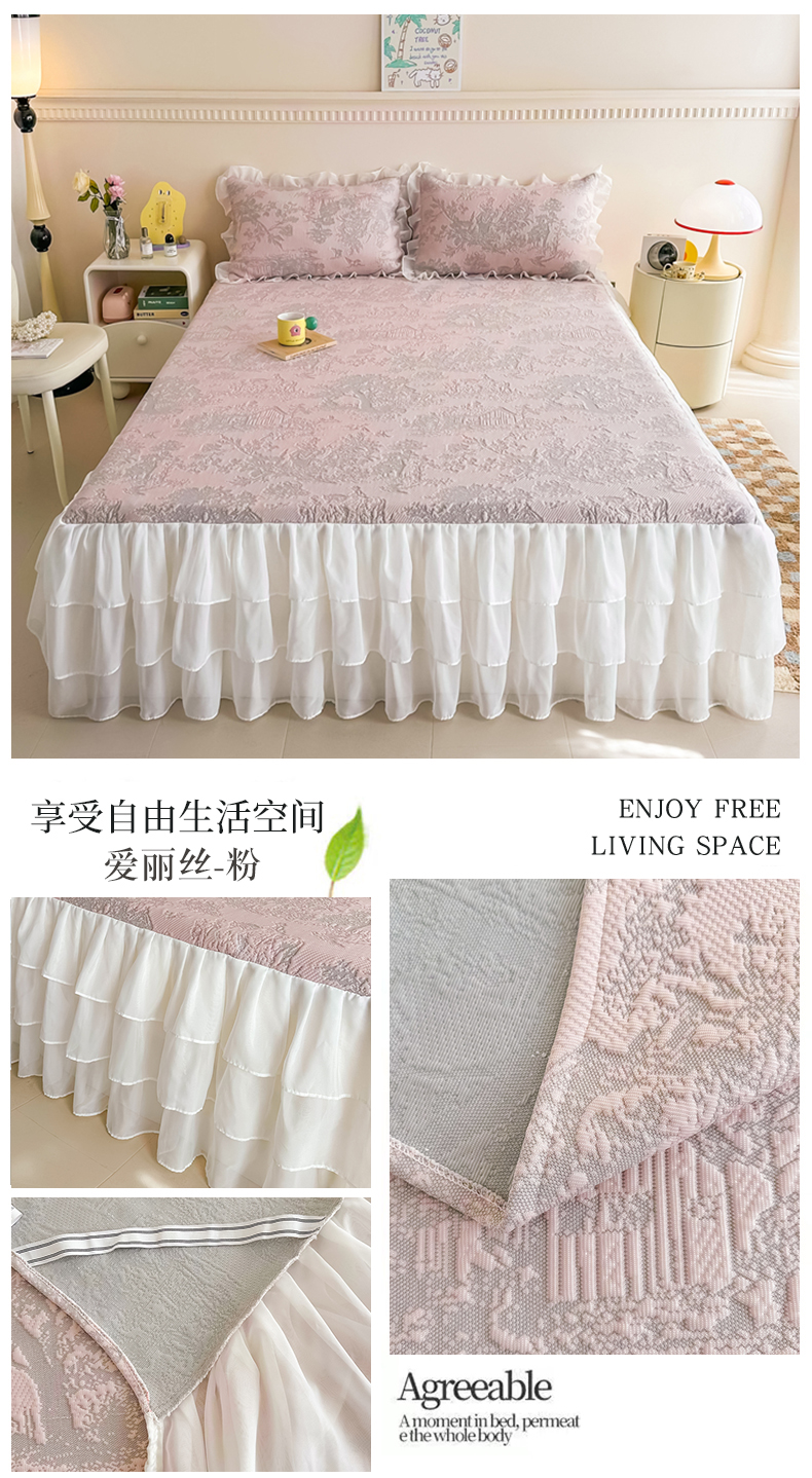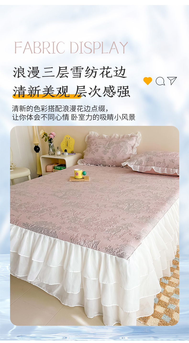 屹成家纺 2024新款PE高分子冰丝凉席床裙款 爱丽丝-粉