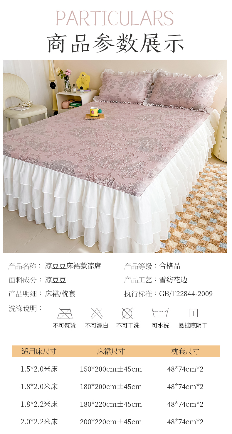商品名称:屹成家纺 2024新款PE高分子冰丝凉席床裙款 爱丽丝-粉