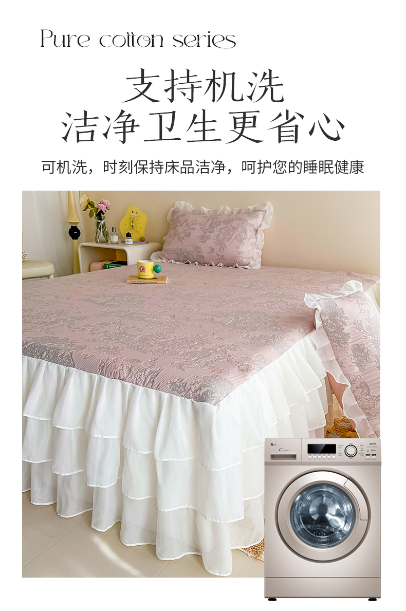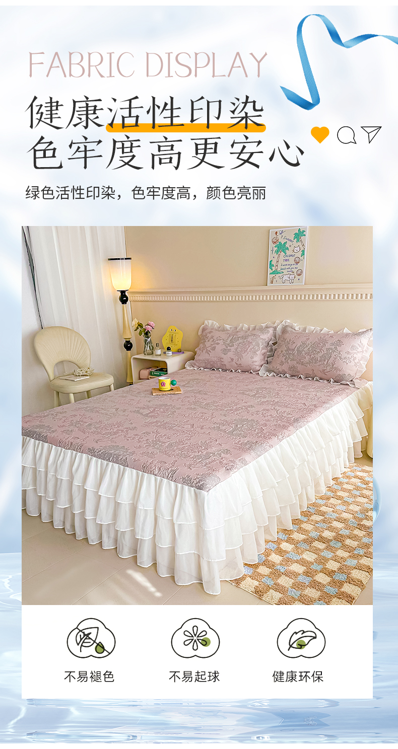 (总)屹成 2024新款水洗棉蕾丝四季款床笠床裙单品套件-床裙三件套,粉玉,豆沙,粉红,大红,橄榄绿,卡其,玫红,浅紫,水绿,天蓝,银灰