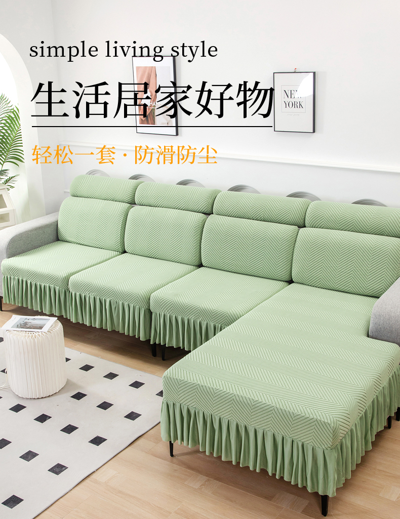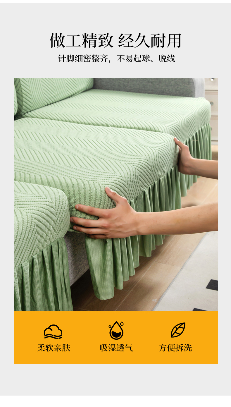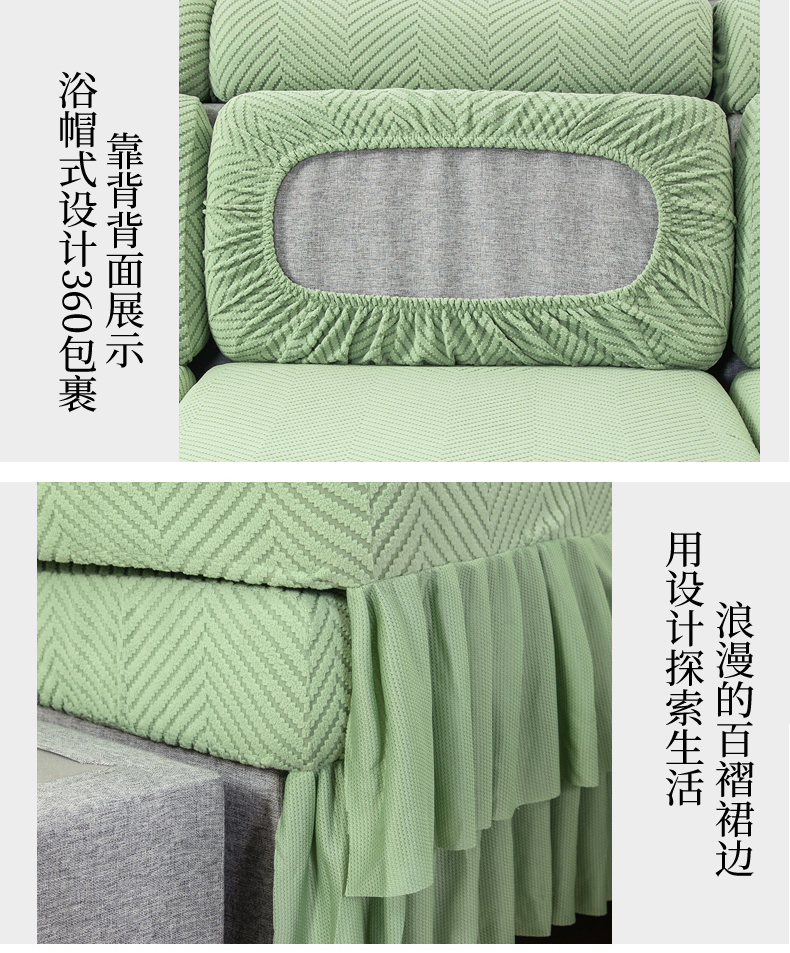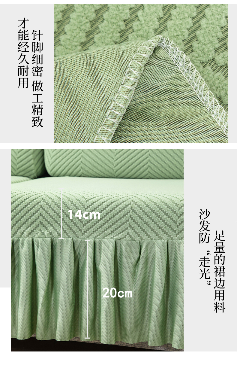 当前位置: 91家纺网 > 商品网购 > 居家布艺 > 坐垫/椅垫/沙发垫 > 沙发垫 > 千彤 2024新款裙边款弹力沙发套罩拉花绒人字纹系列沙发笠 浅绿
