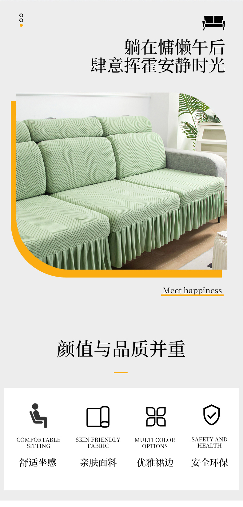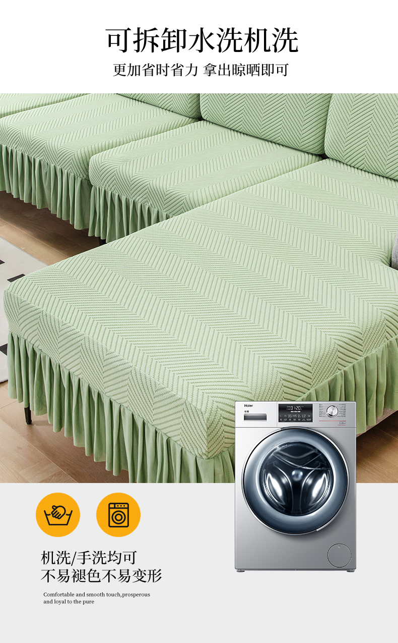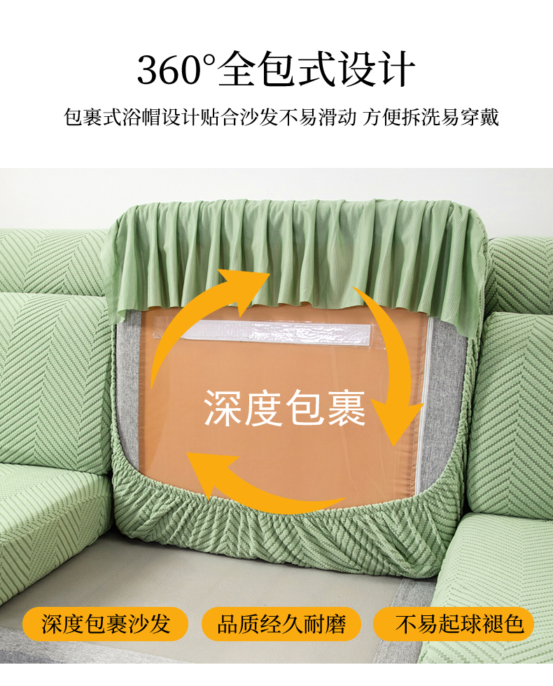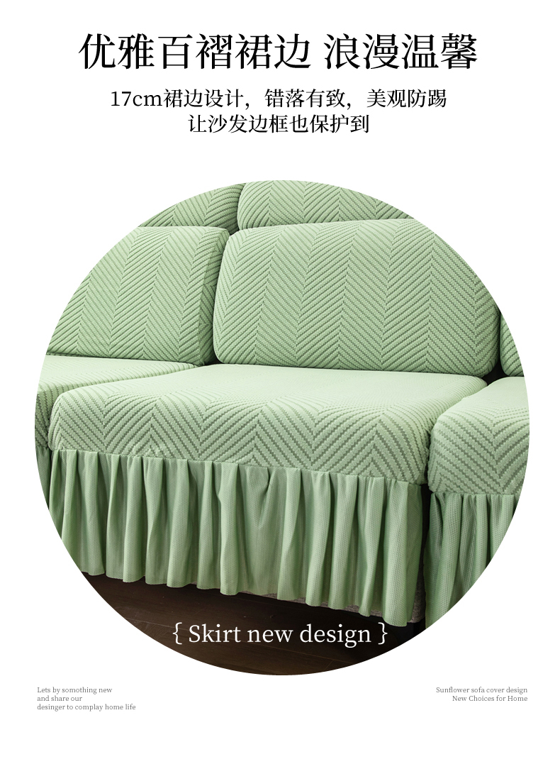 当前位置: 91家纺网 > 商品网购 > 居家布艺 > 坐垫/椅垫/沙发垫 > 沙发垫 > 千彤 2024新款裙边款弹力沙发套罩拉花绒人字纹系列沙发笠 浅绿