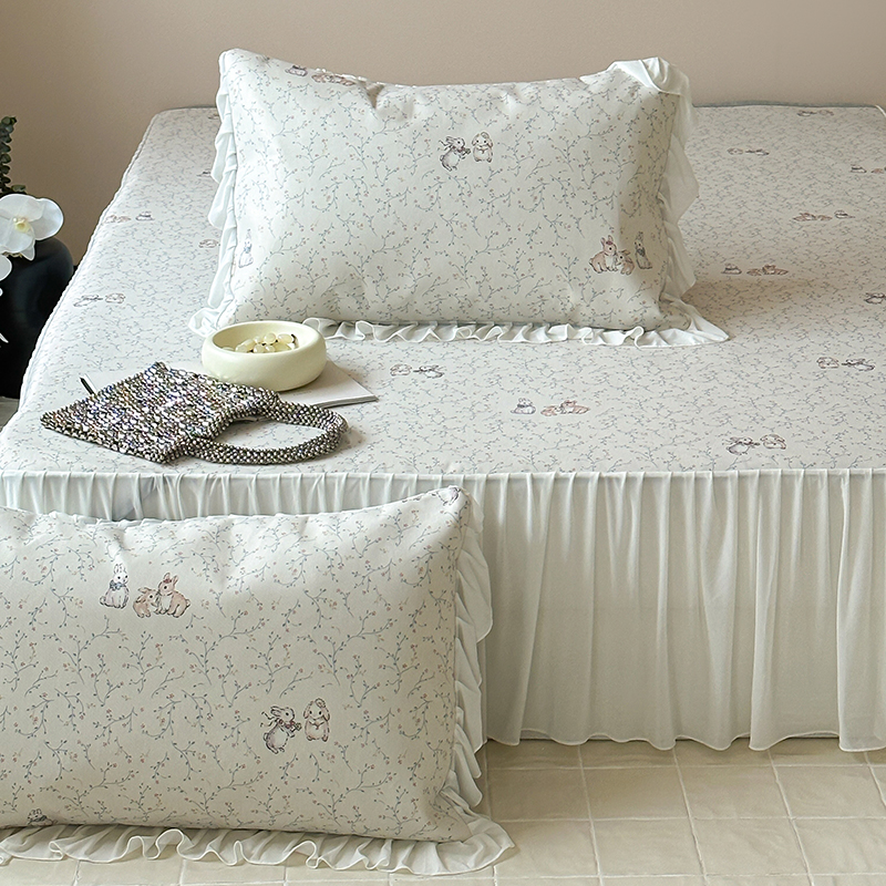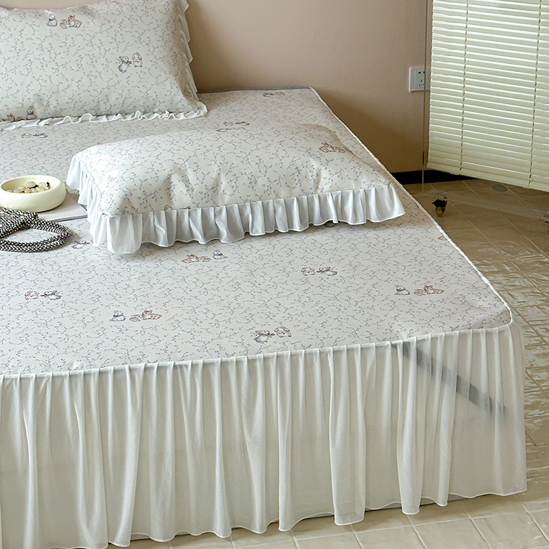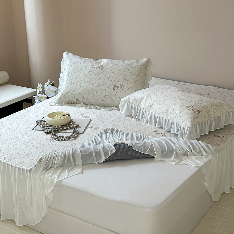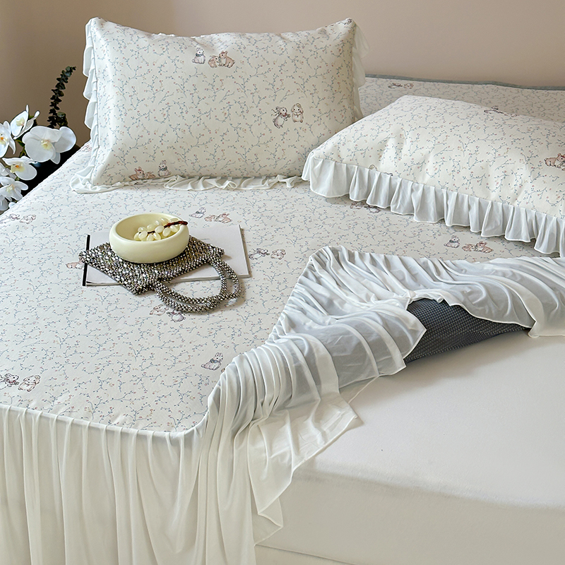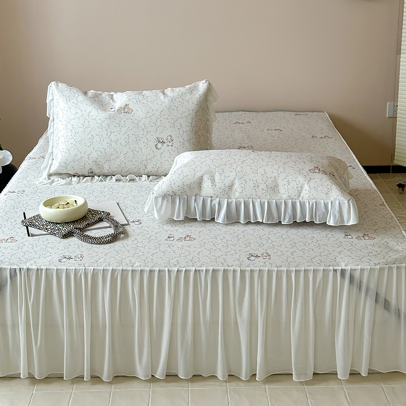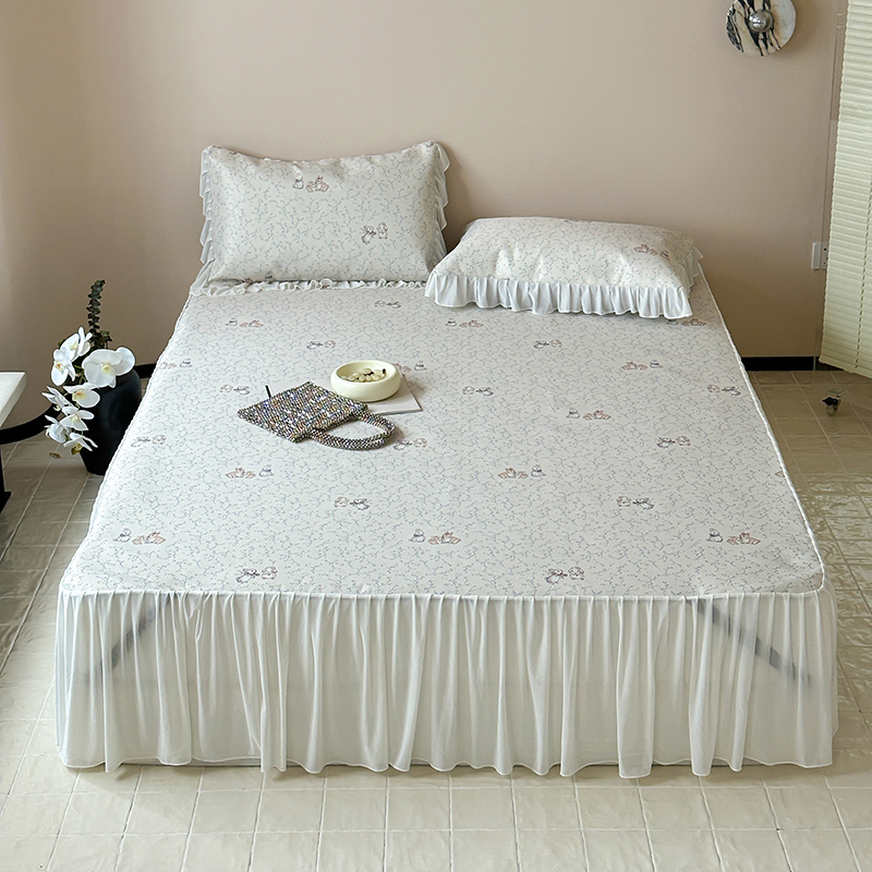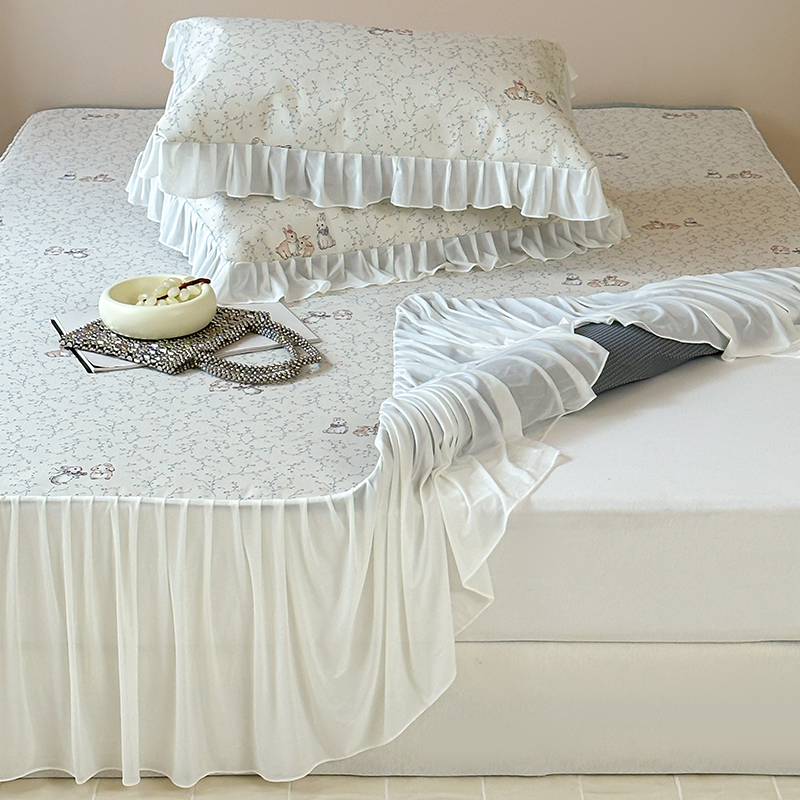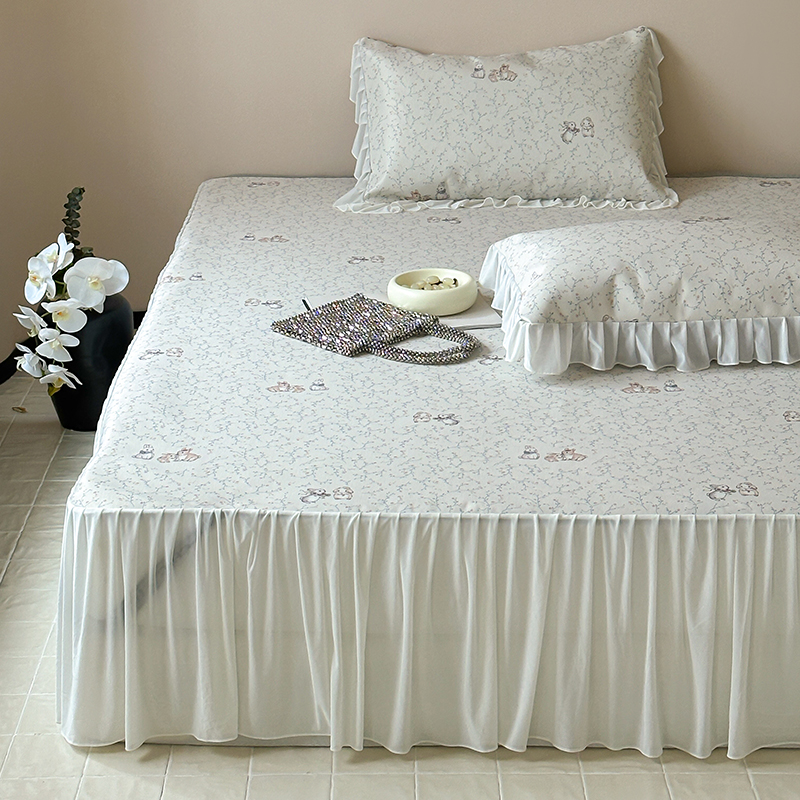 昔可 2024新款A类900D仙仙雪纺纱床裙款冰丝席三件套 花楹兔