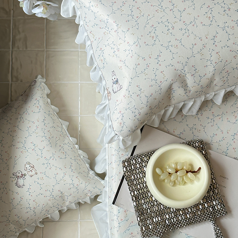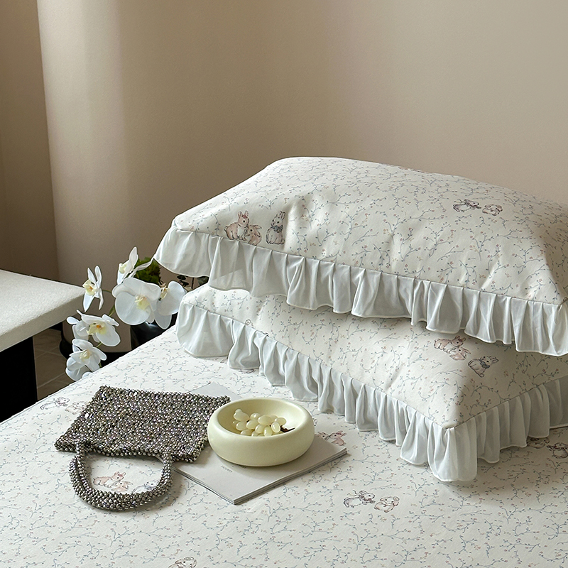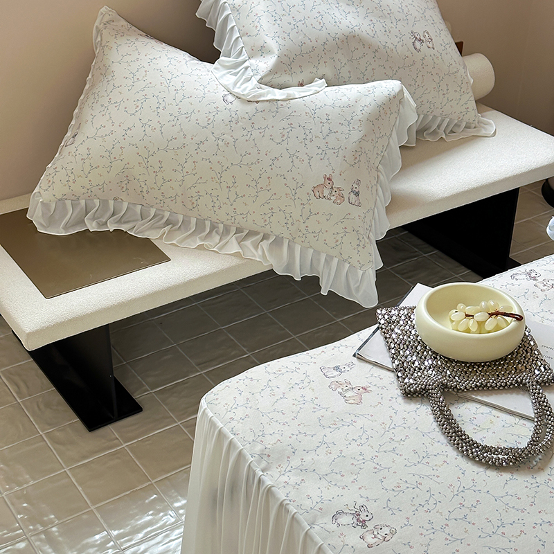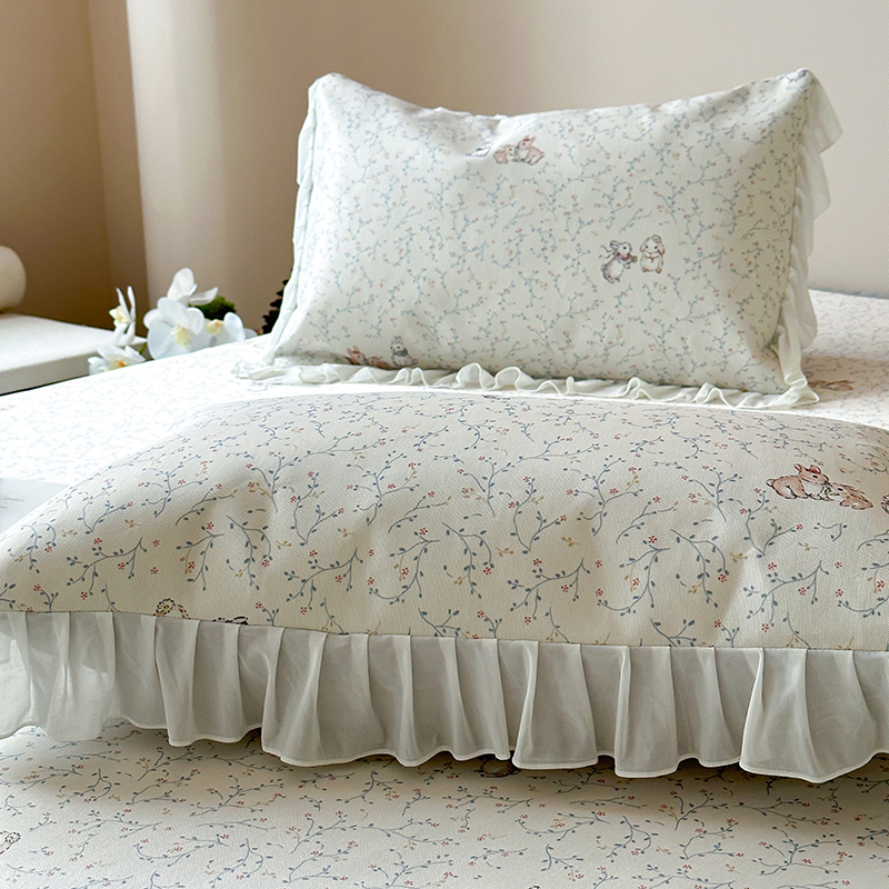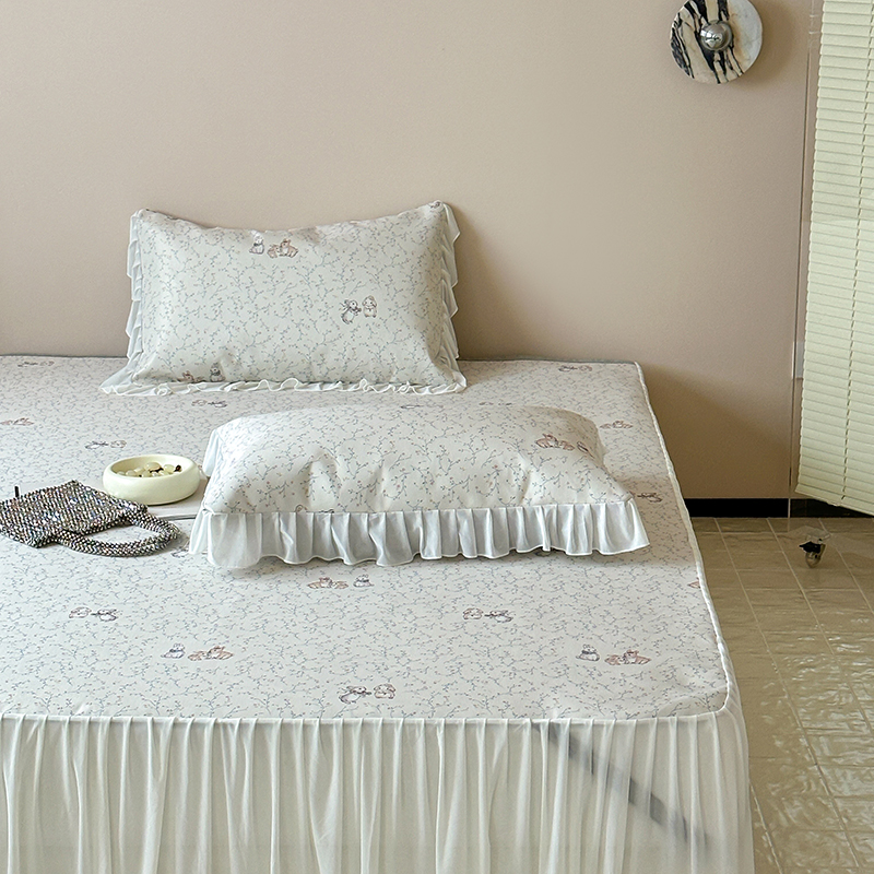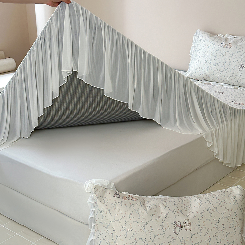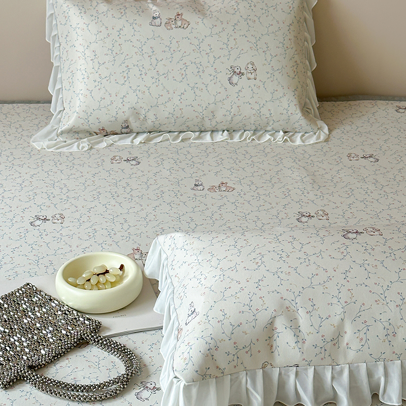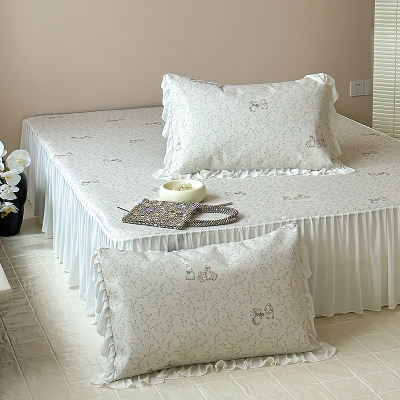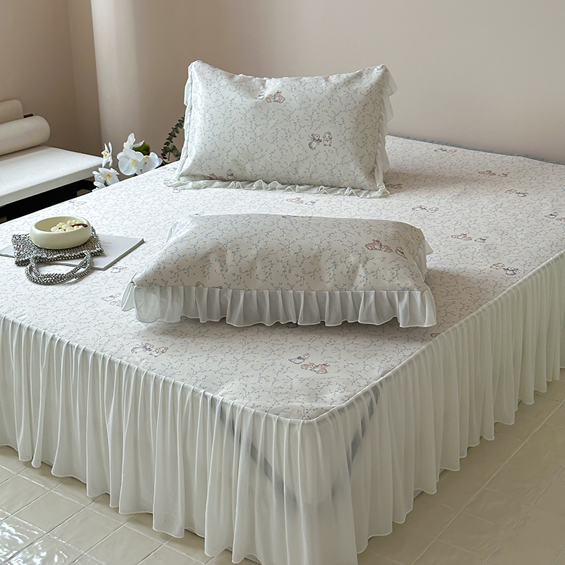昔可 2024新款A类900D仙仙雪纺纱床裙款冰丝席三件套 花楹兔