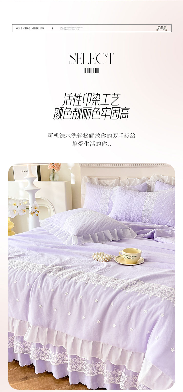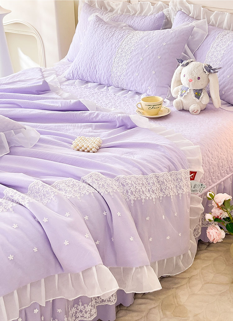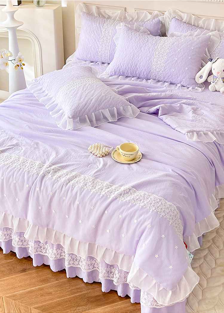 (总)2025韩版少女心法式公主风水洗棉蕾丝花边绣花夏被床盖款四件套泡泡棉小竺棉凉感丝夏被床盖款四件套