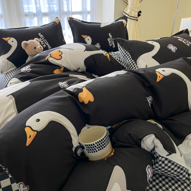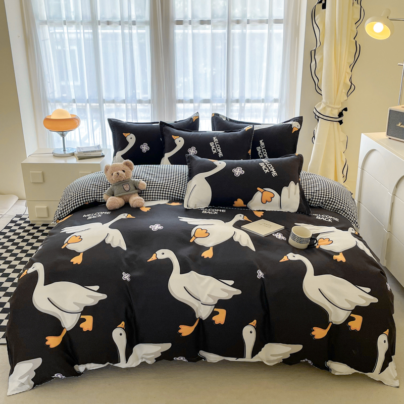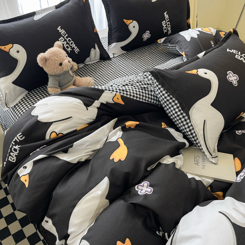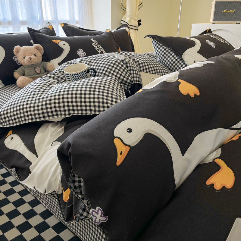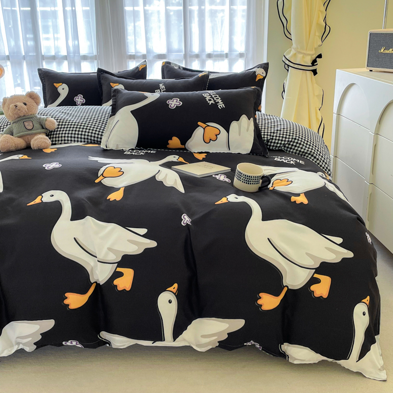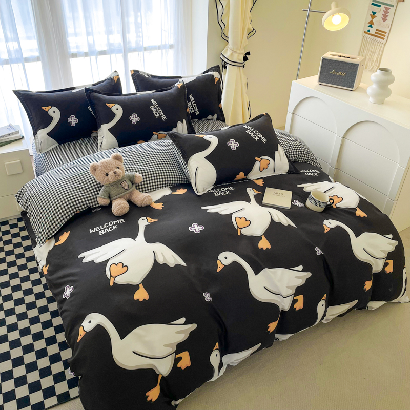 宏源家纺 2024新款亲肤芦荟棉印花四件套-四月新品 黑天鹅