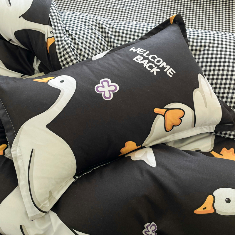 商品名称:宏源家纺 2024新款亲肤芦荟棉印花四件套-四月新品 黑天鹅