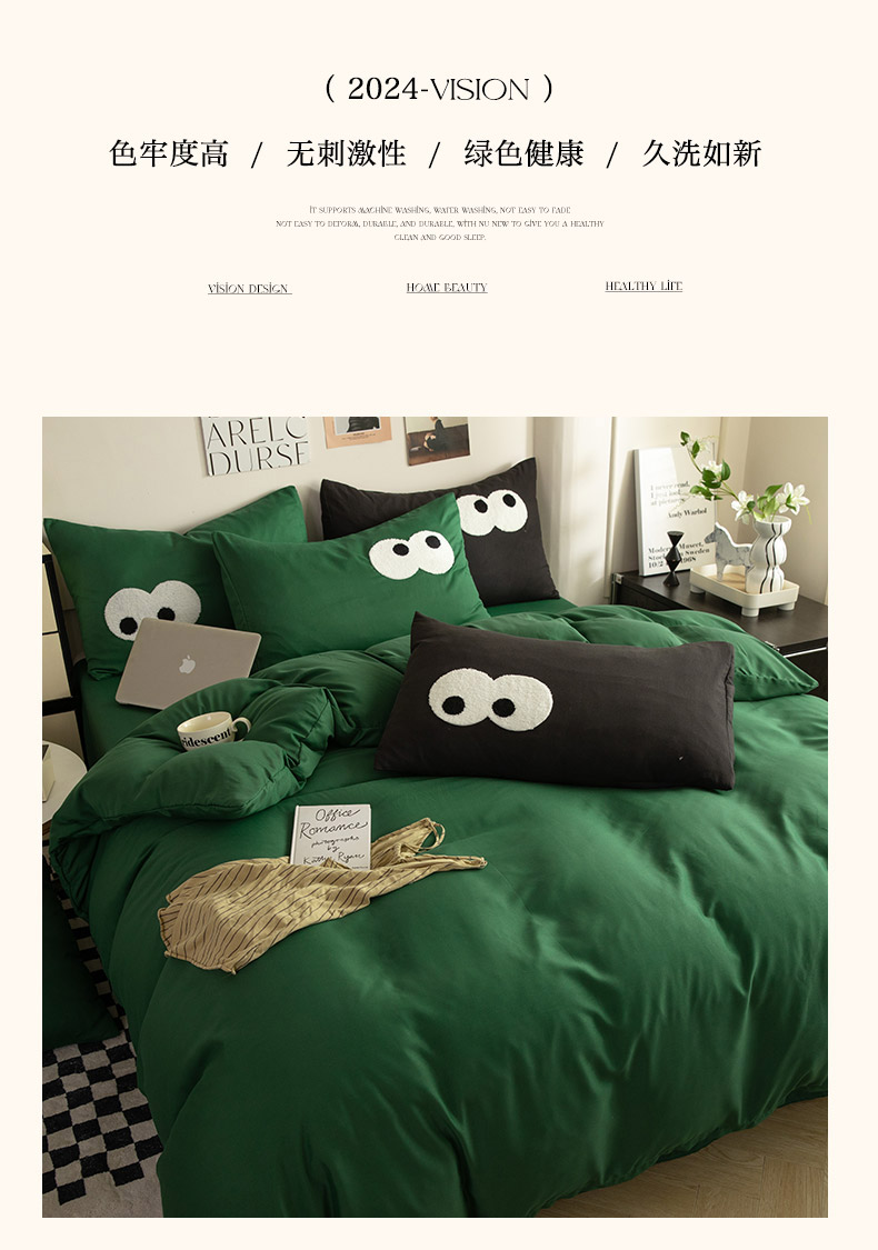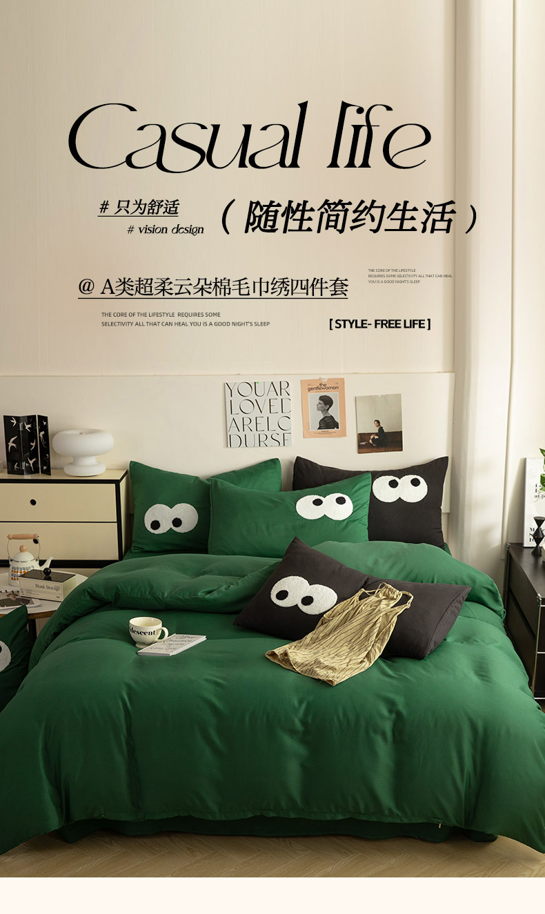当前位置: 91家纺网 > 商品网购 > 床品套件 > 四件套 > 毛巾绣四件套 > 妖妖家纺 2024新款超柔水洗棉毛巾绣四件套(眼睛) 大眼睛-翠绿+深黑