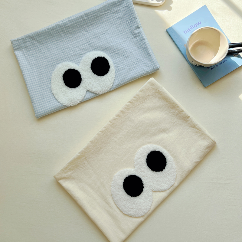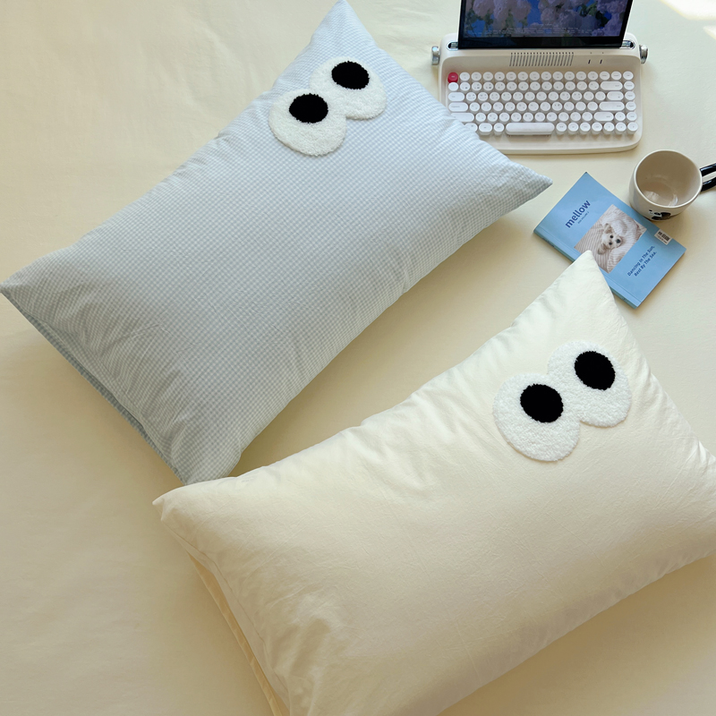 盼季家纺 2024新款萌趣毛巾绣大眼睛枕套 大眼-小蓝格+奶黄