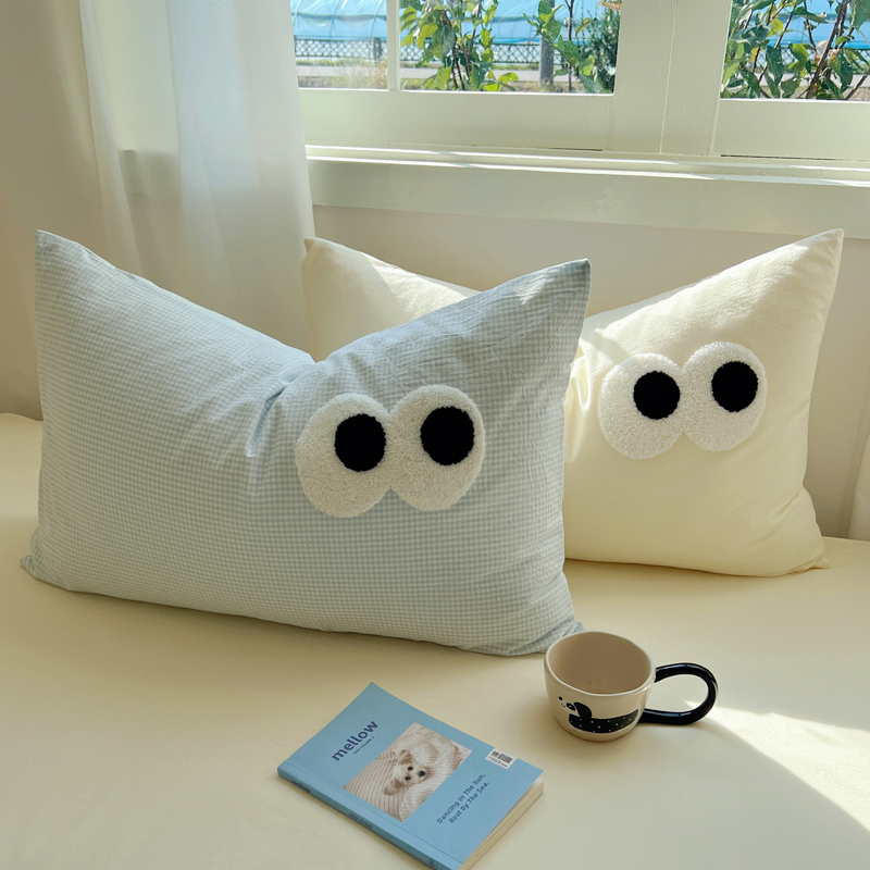 商品名称:盼季家纺 2024新款萌趣毛巾绣大眼睛枕套 大眼-小蓝格+奶黄