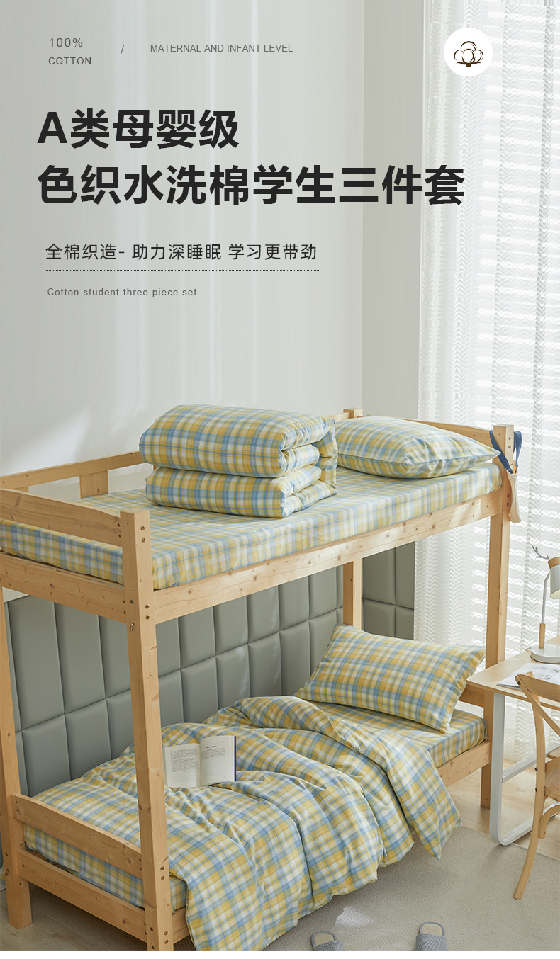 当前位置: 91家纺网 > 商品网购 > 床品套件 > 四件套 > 全棉普通四件套 > 柠萌家居 2025新品A类全棉色织水洗棉简约条纹格子无印良品风格学生季宿舍上下铺AA版三件套四件套 简爱黄格