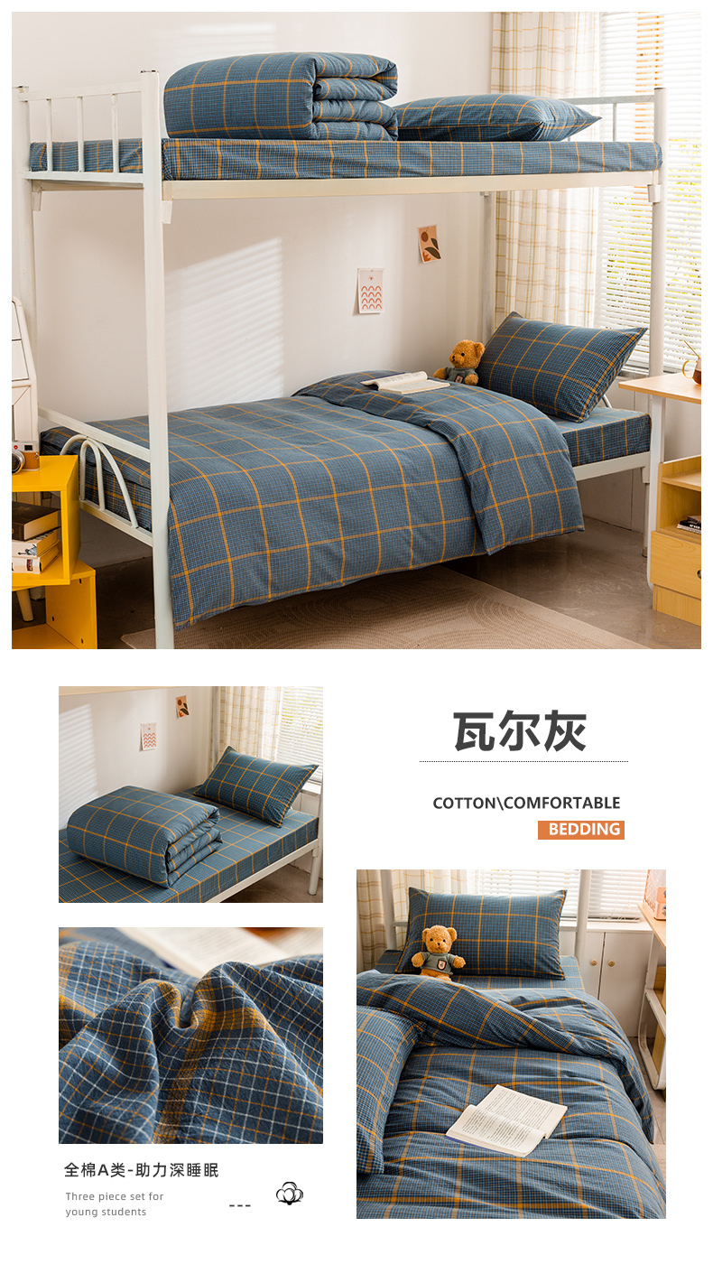 当前位置: 91家纺网 > 商品网购 > 床品套件 > 四件套 > 全棉普通四件套 > 柠萌家居 2025新品A类全棉色织水洗棉简约条纹格子无印良品风格学生季宿舍上下铺AA版三件套四件套 瓦尔灰