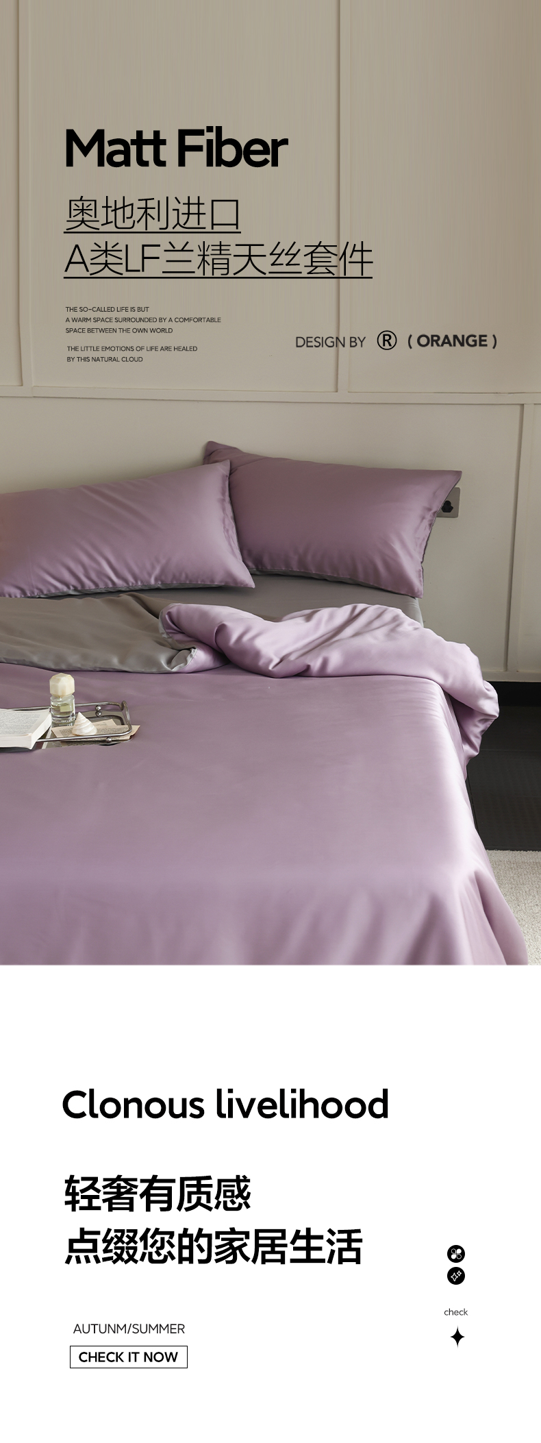 当前位置: 91家纺网 > 商品网购 > 床品套件 > 四件套 > 莱赛尔四件套 > 轩和 2025新款A类LF兰精天丝套件 香气紫+伯爵灰