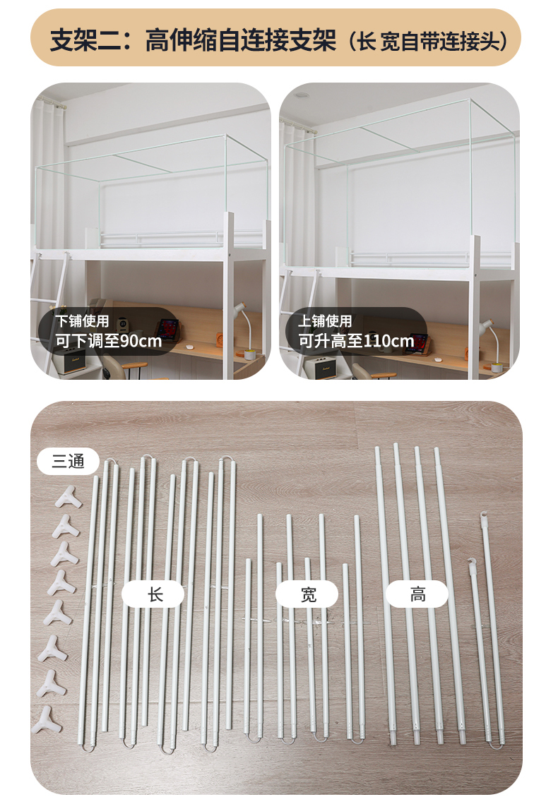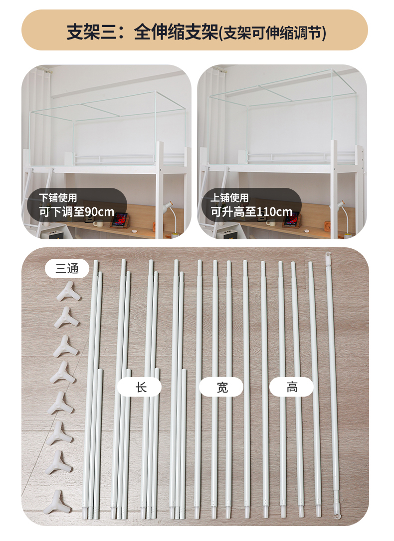 高伸缩免拼烤漆支架上铺90 ×190×110 (三开门) | ¥85.00 |