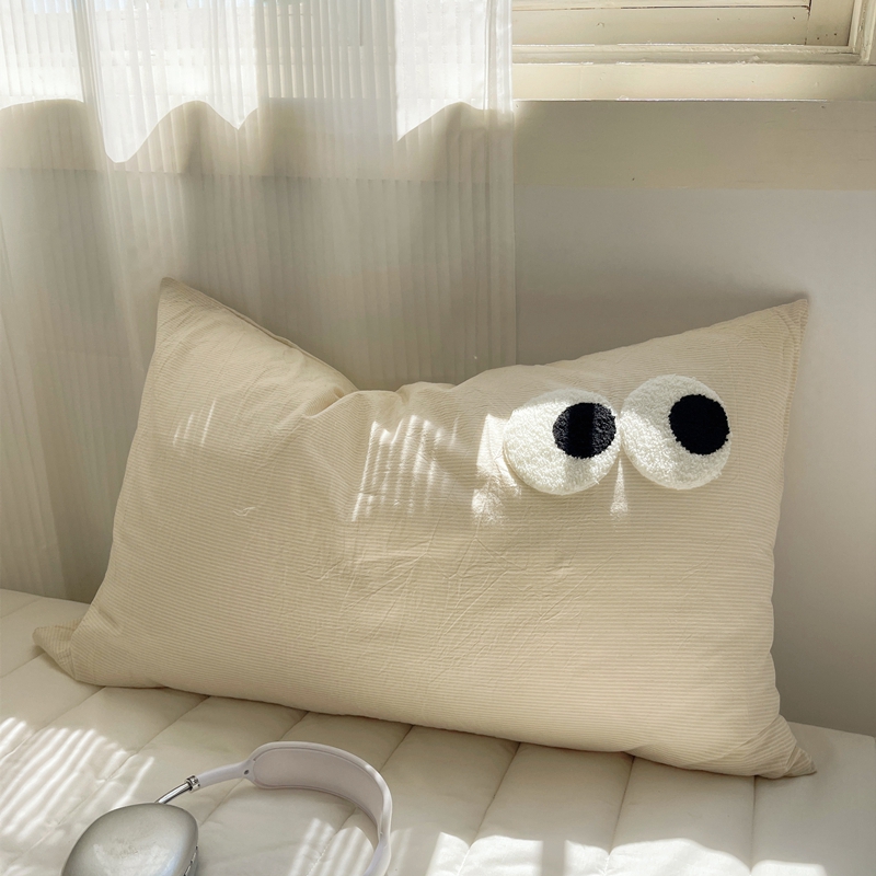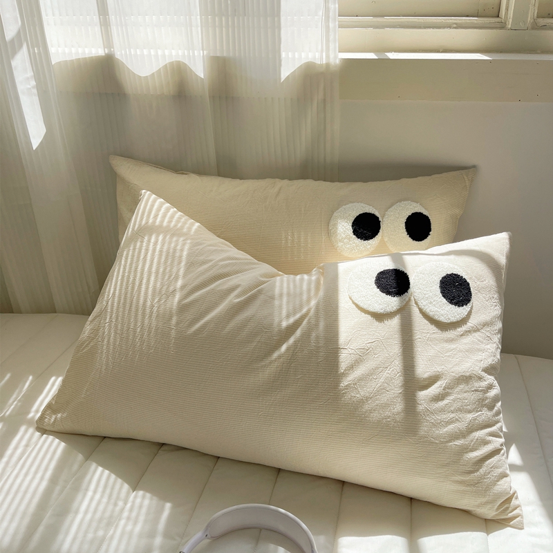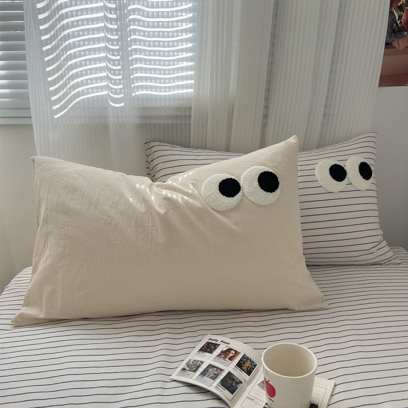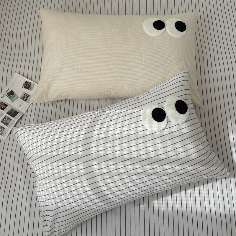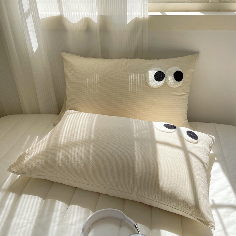 丽涵家纺 2024新款色织水洗棉大眼毛巾绣-单品枕套 大眼密条米