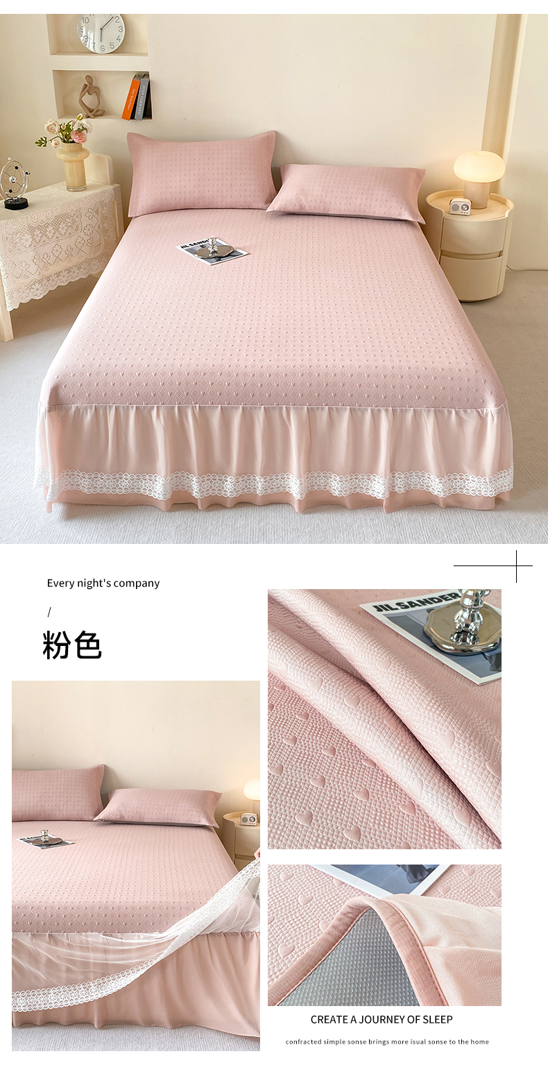(总)美洲琳 2025新款650克凉豆豆凉席床裙三件套,湖蓝,浅灰,水绿,香槟,心粉