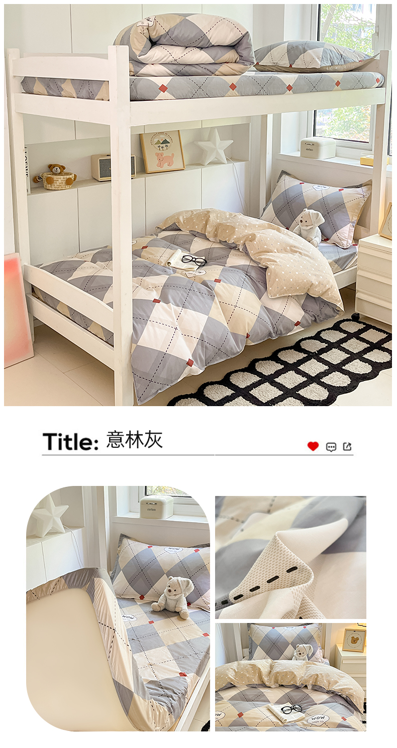 当前位置: 91家纺网 > 商品网购 > 床品套件 > 三件套 > 2024新款全棉印花三件套学生宿舍床三件套上下铺床单被套 意林灰