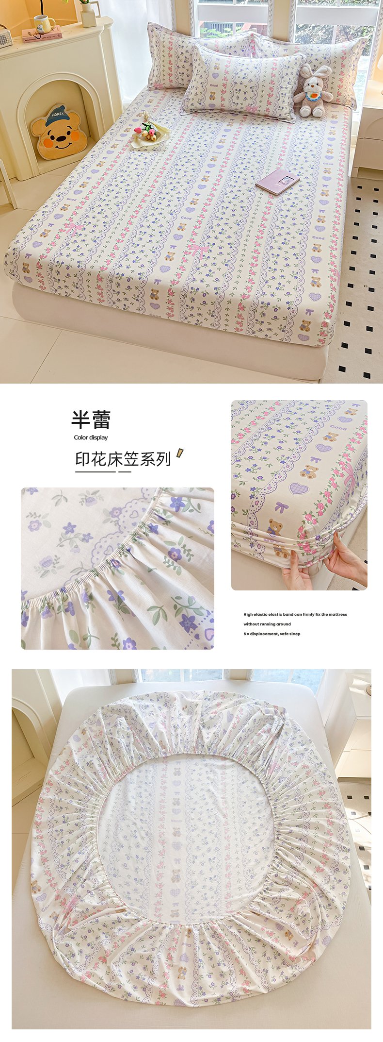 • 91家纺网 家纺一手货源 找家纺 铭成家纺 2024新款新疆棉喷气印花小清新系列单床笠半蕾
