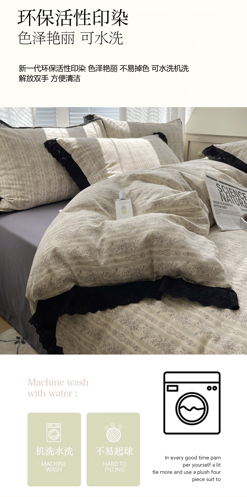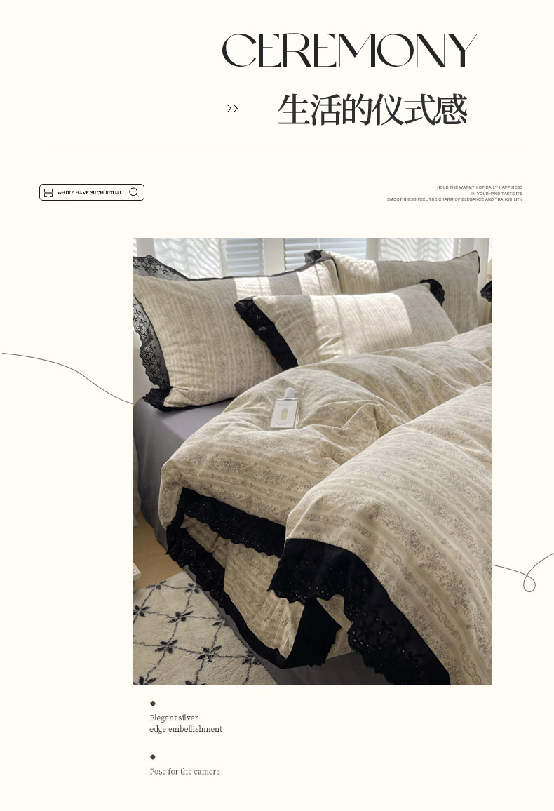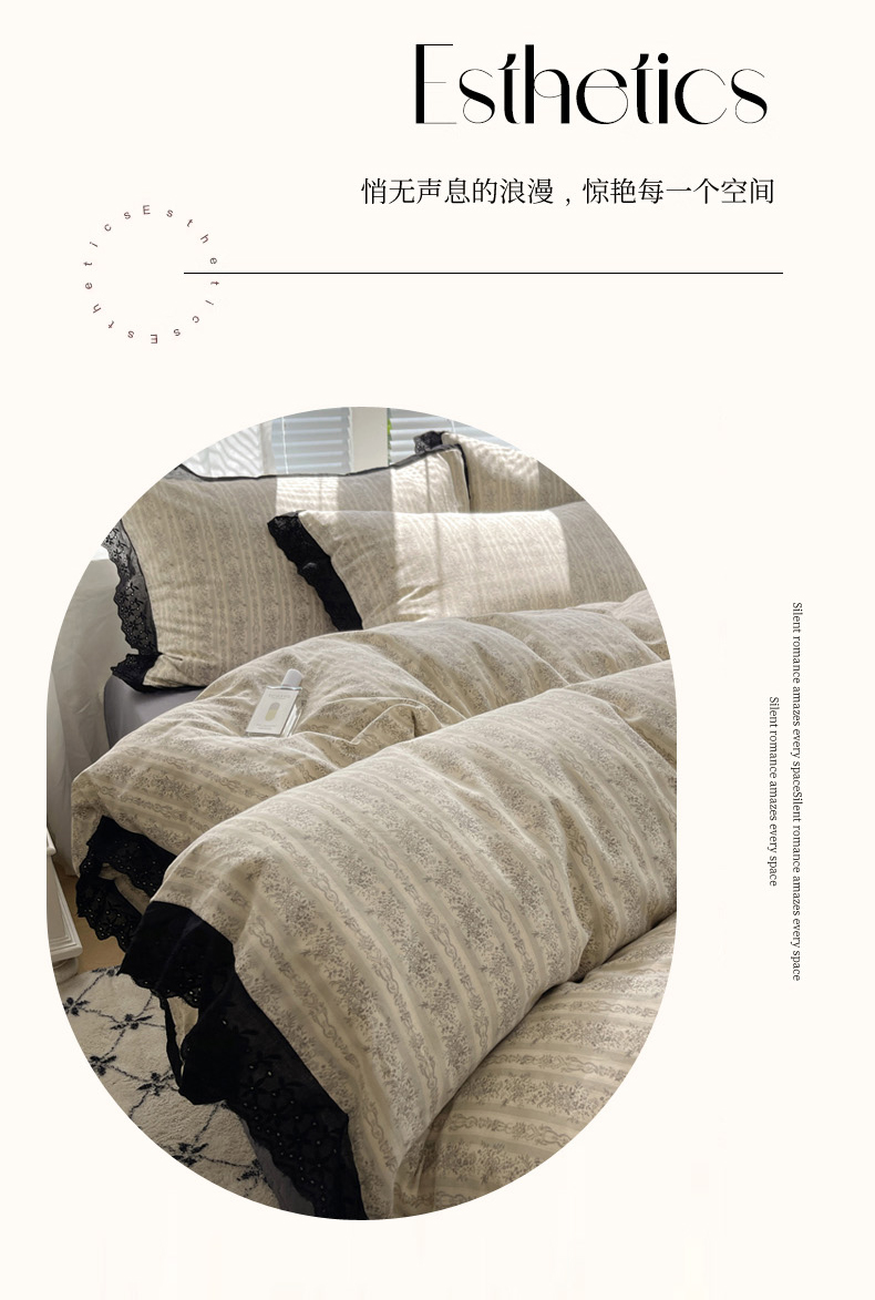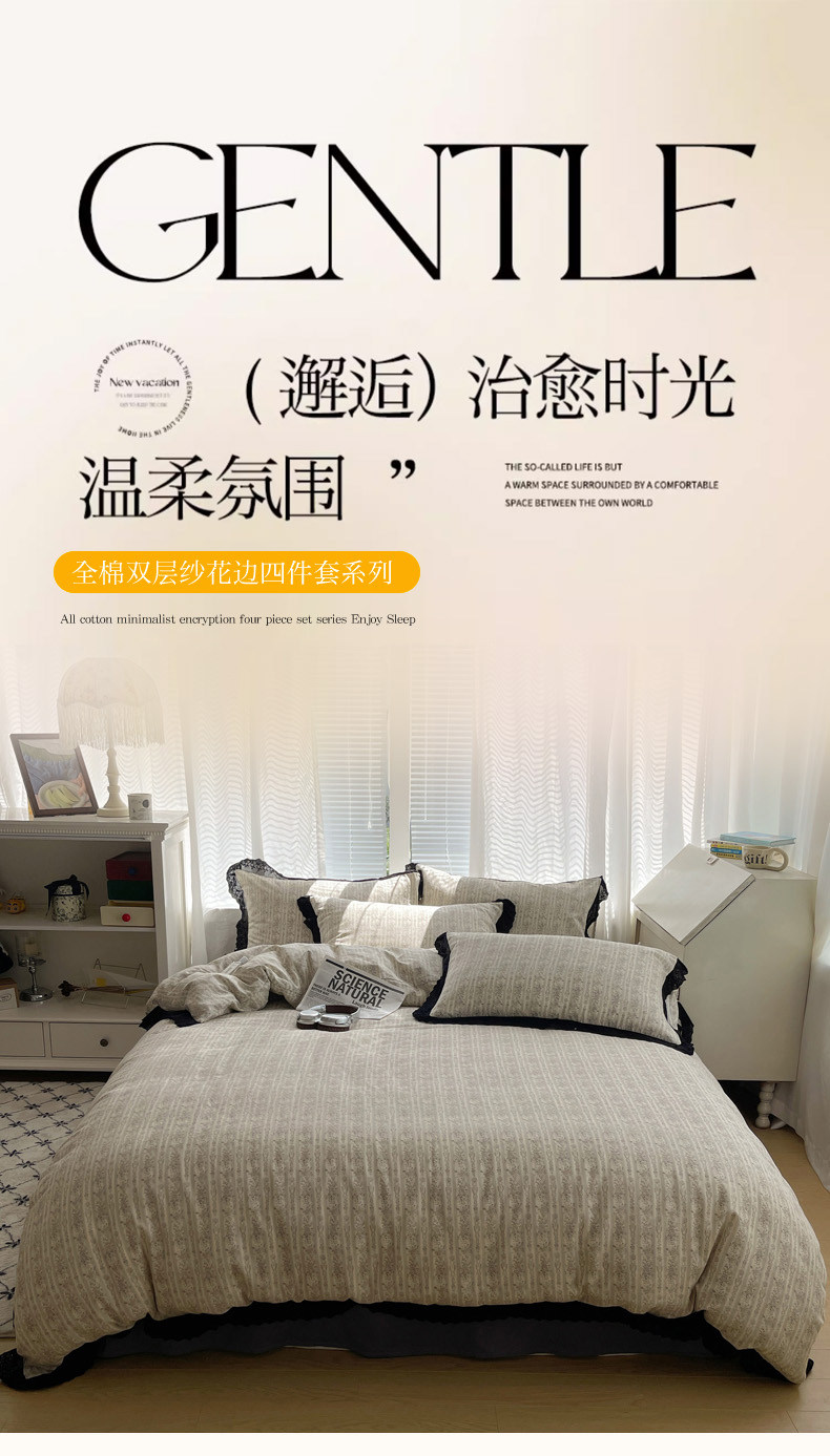 2025新款全棉黑边双层纱花边款四件套 花边款-庄园