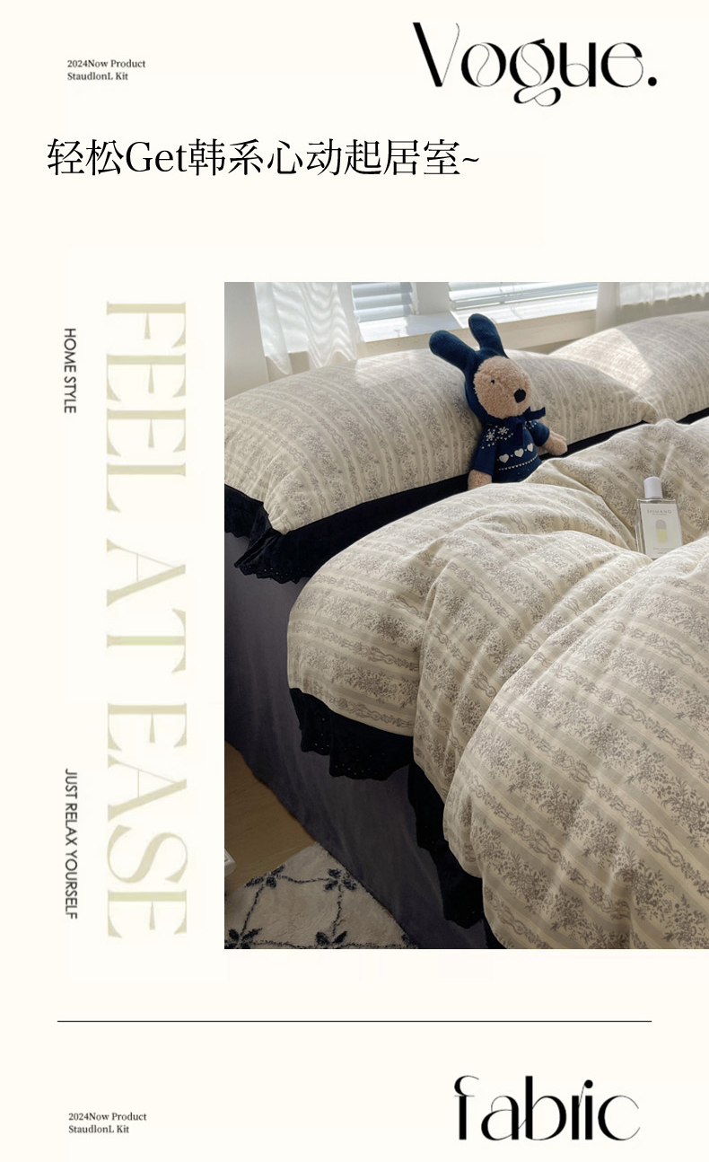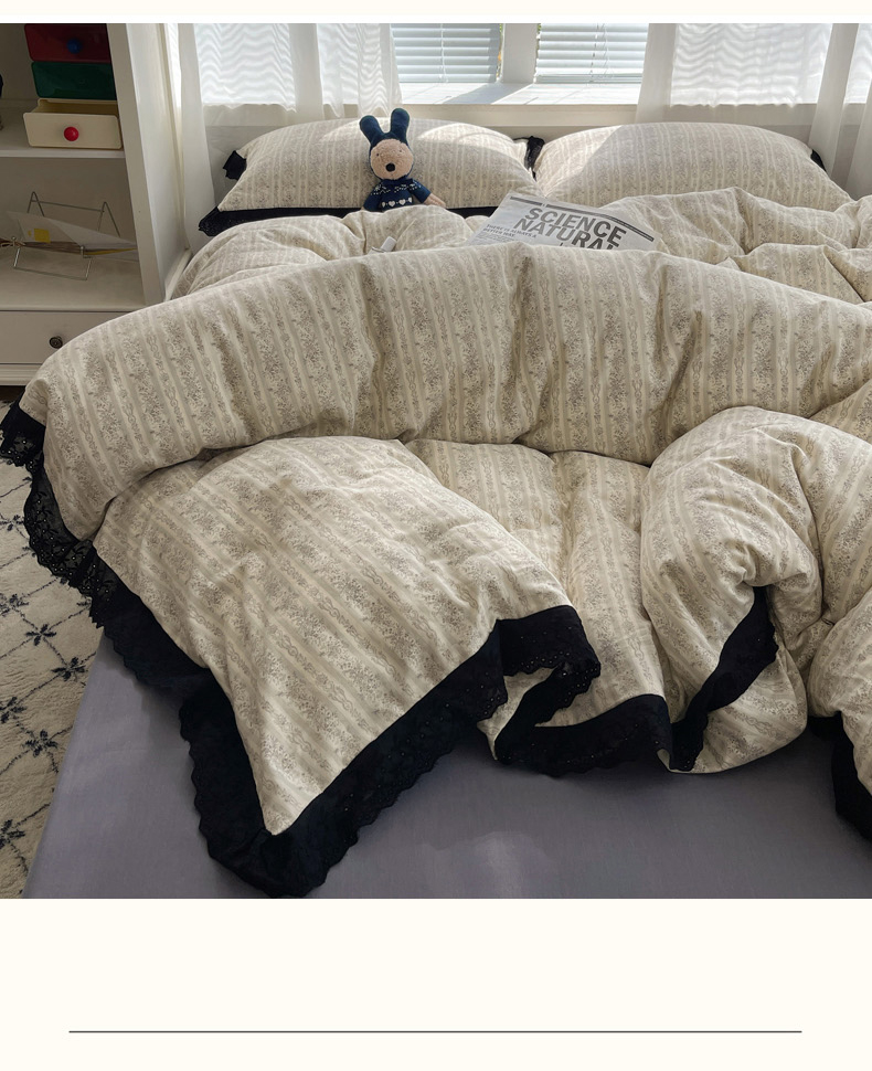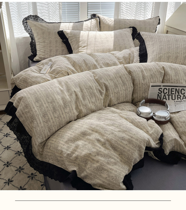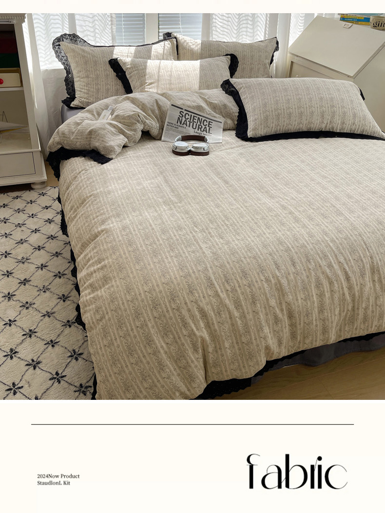 2025新款全棉黑边双层纱花边款四件套 花边款-庄园
