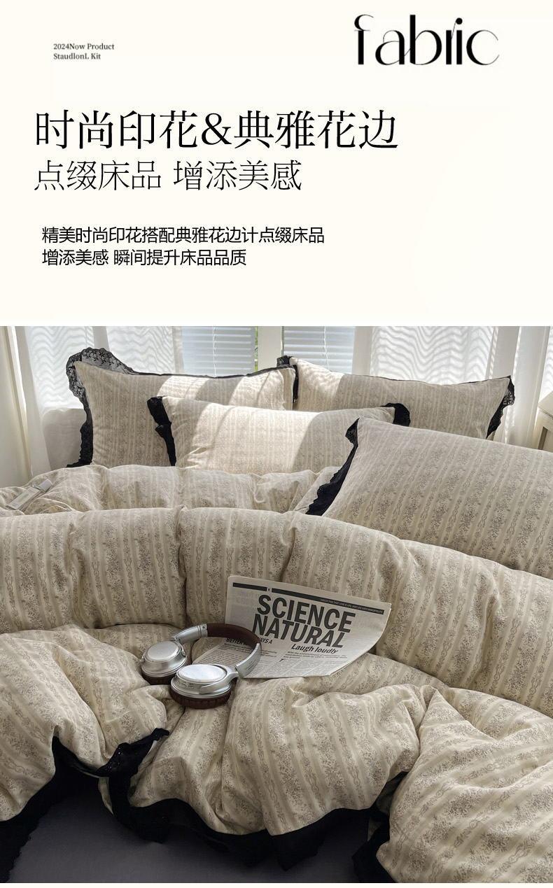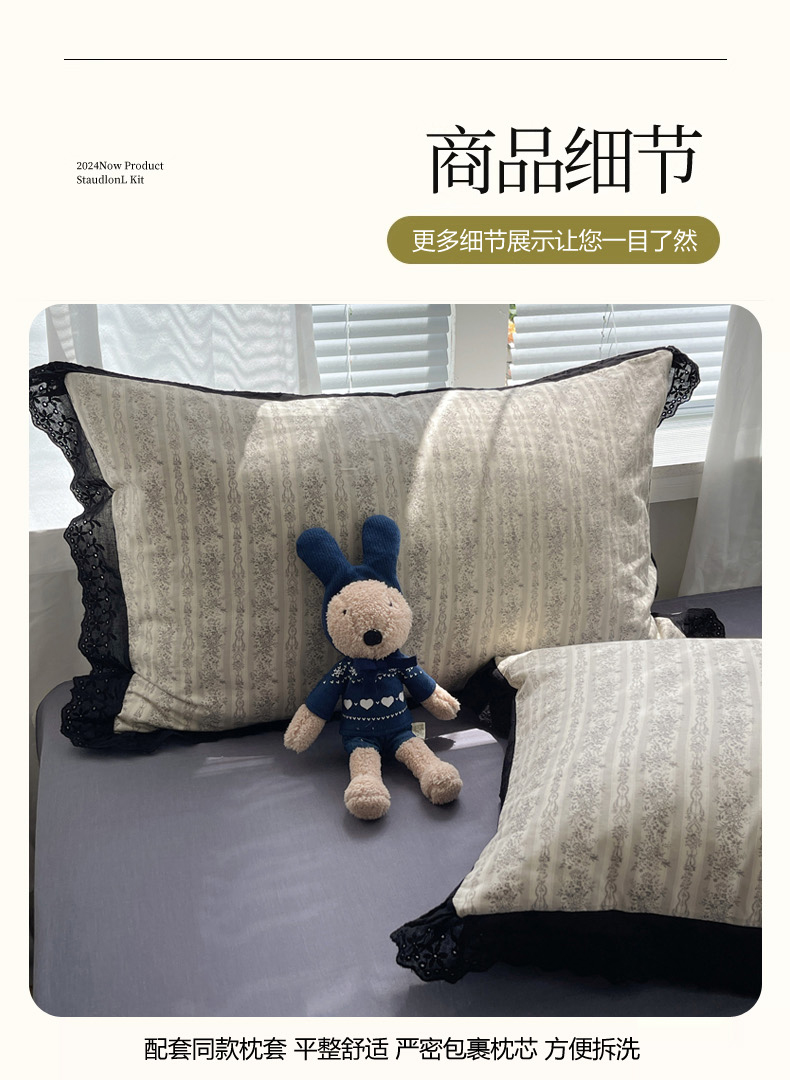 商品名称:2025新款全棉黑边双层纱花边款四件套 花边款-庄园