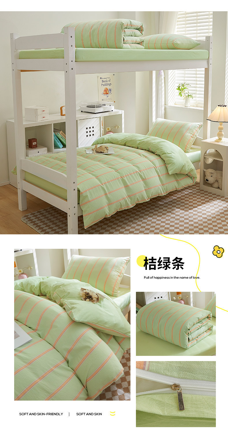 商品名称:吾诺家居 2024学生季新款全棉学生宿舍三件套六件套组合系列 桔绿条