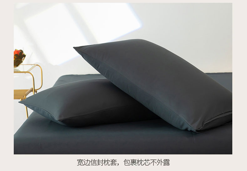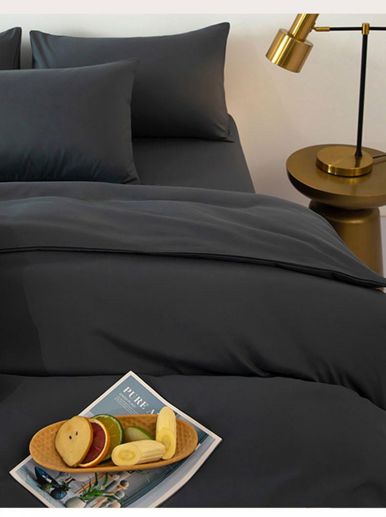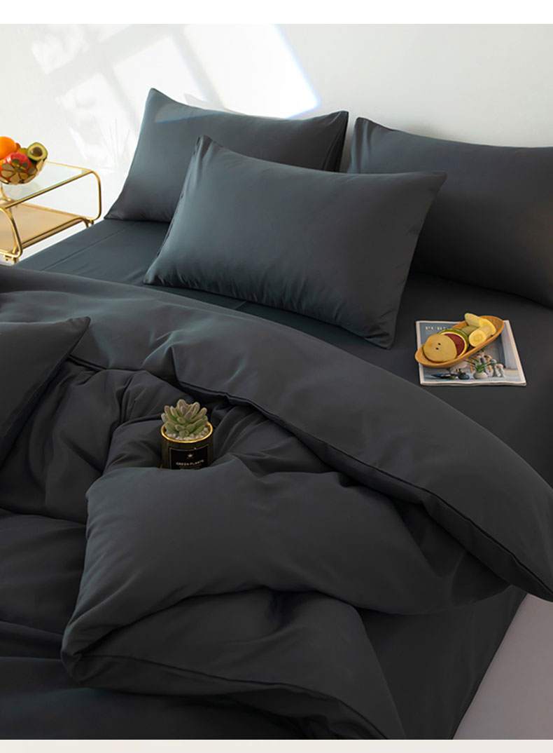 梦莱家纺 2024新款亲肤磨毛纯色拼色轻奢系列四件套 深灰