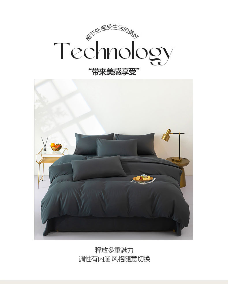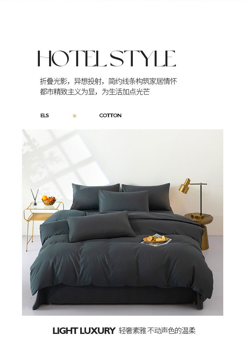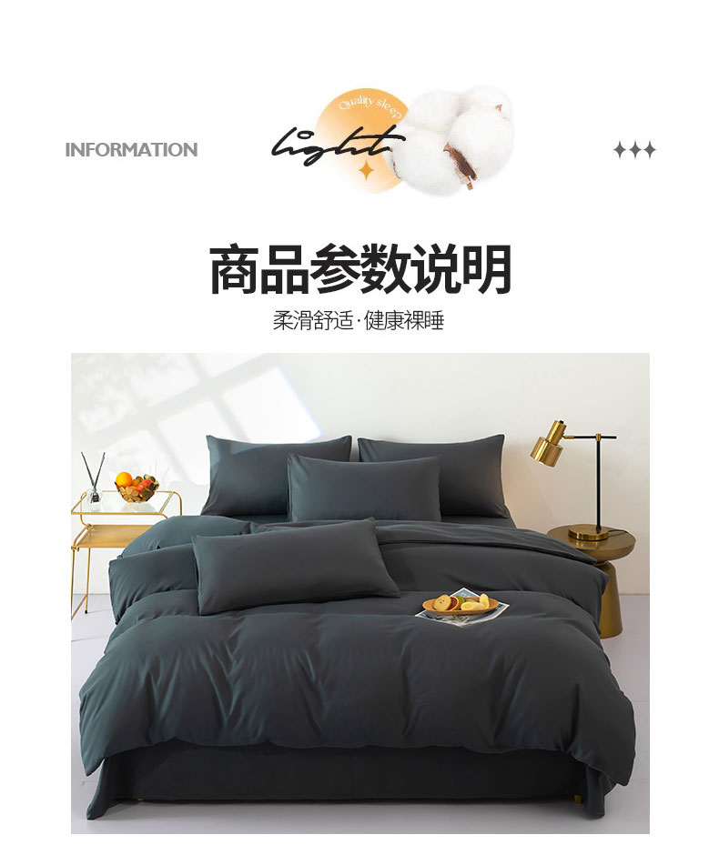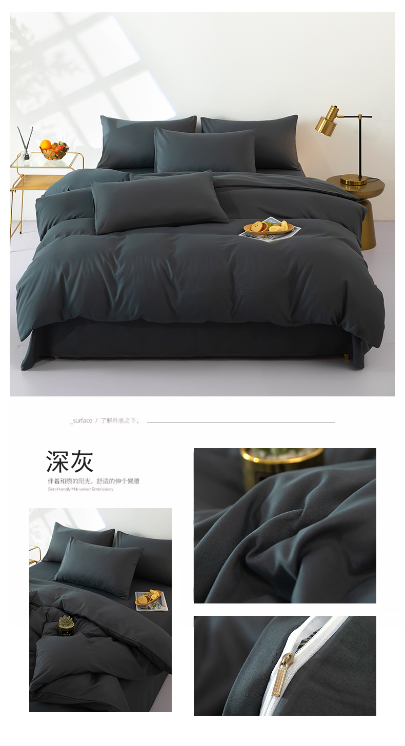 商品名称:梦莱家纺 2024新款亲肤磨毛纯色拼色轻奢系列四件套 深灰