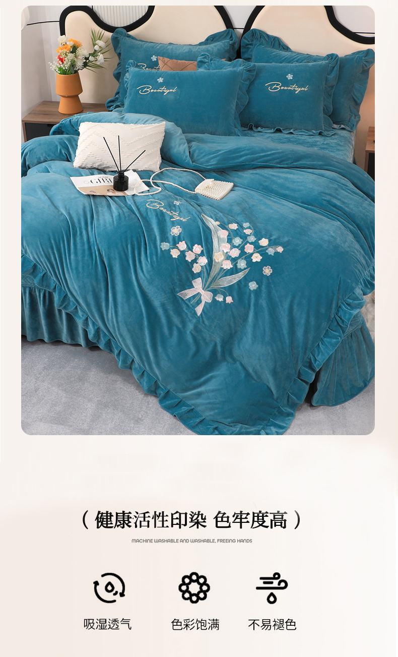 (总)优姿家纺 2025新款牛奶绒花边绣花床盖四件套,花漾时光-果绿,花漾时光-玖红色,花漾时光-米色,花漾时光-桃红色,花漾时光-天空兰,花漾时光-雾霾蓝