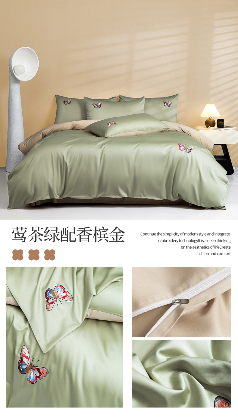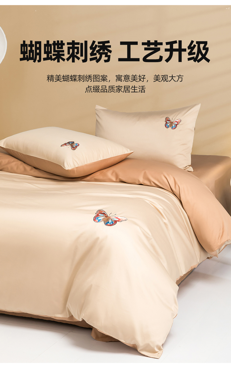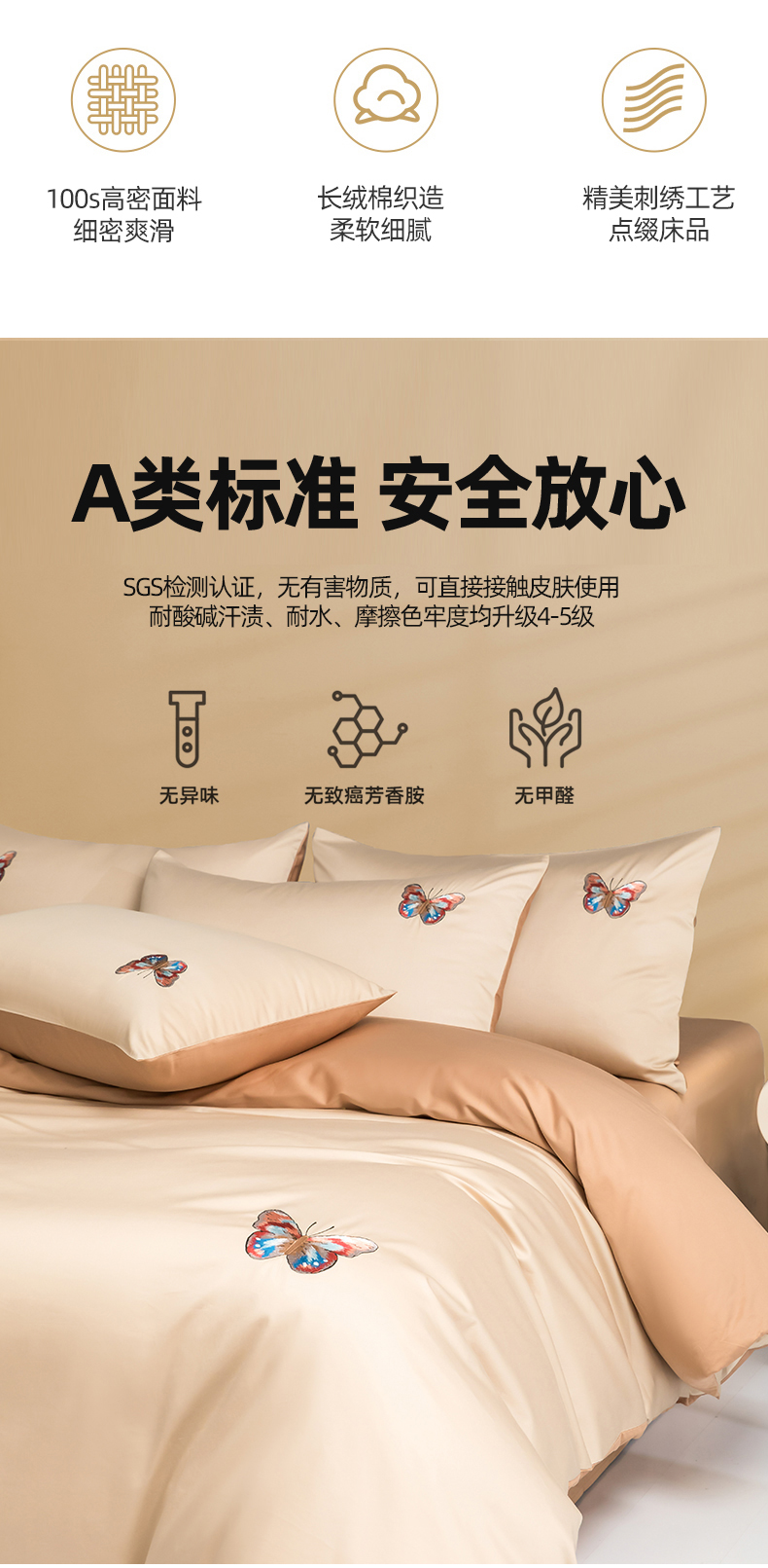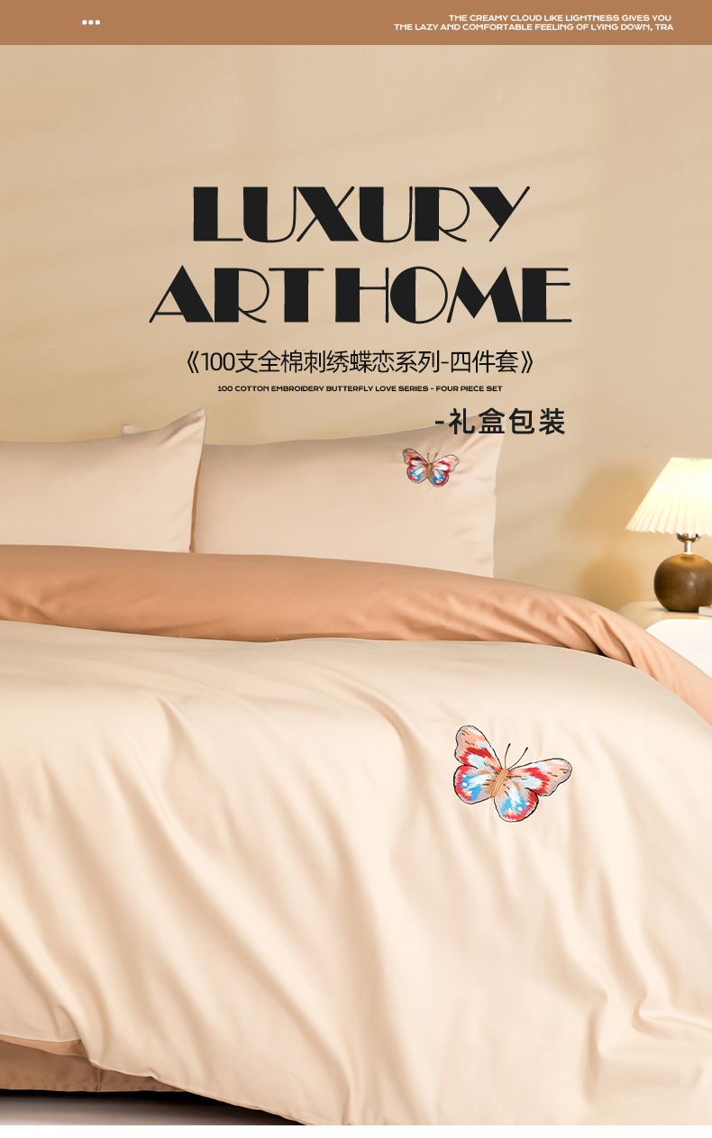 (总)蓝米卡夫 2024新款A类100支全棉刺绣蝶恋系列四件套(礼盒包装)