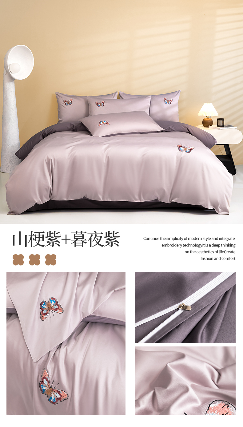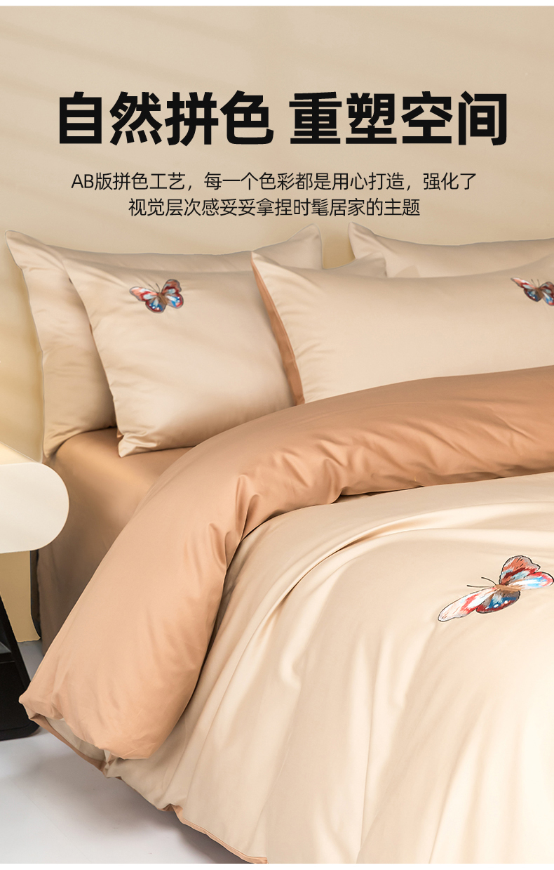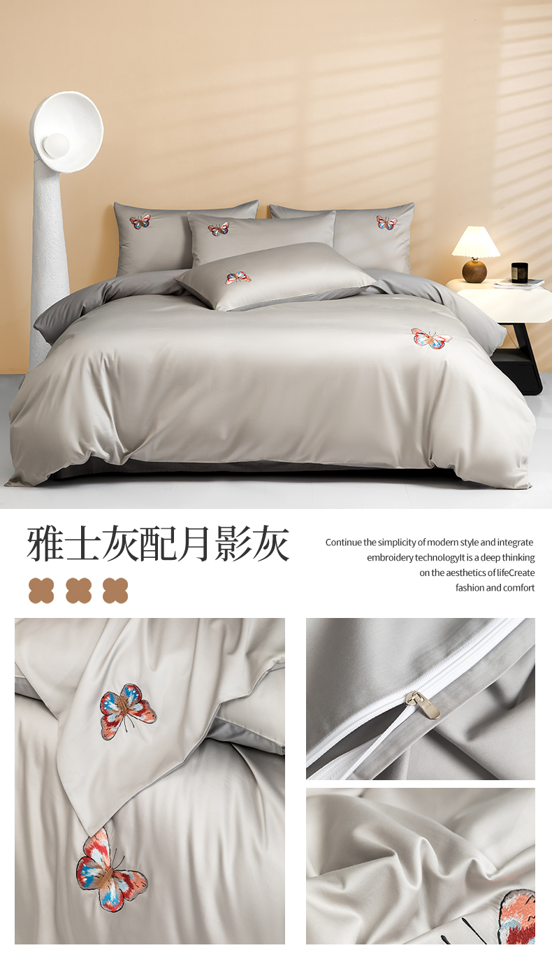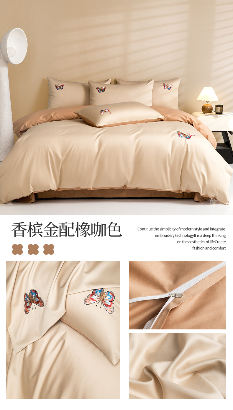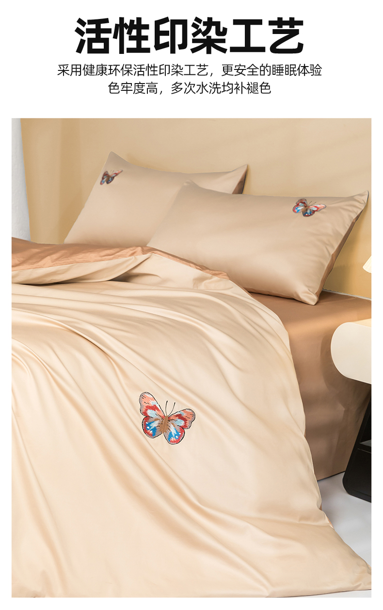 (总)蓝米卡夫 2024新款A类100支全棉刺绣蝶恋系列四件套(礼盒包装)