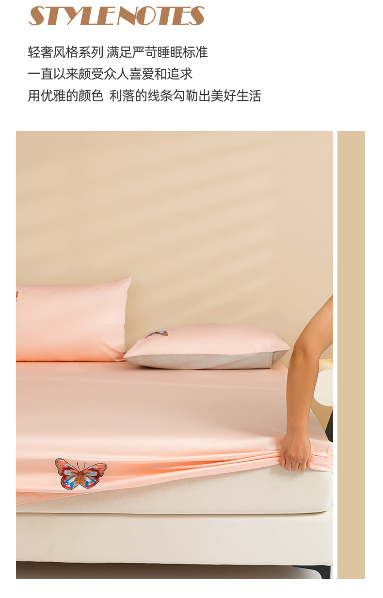 商品名称:(总)蓝米卡夫 2024新款A类100支全棉刺绣蝶恋系列单床笠三件套