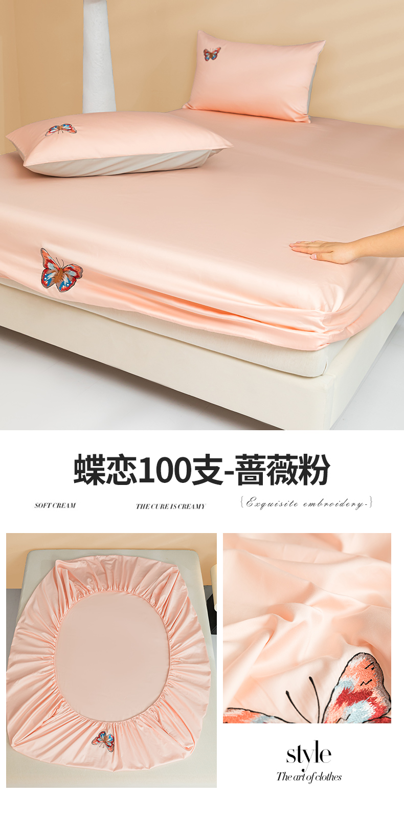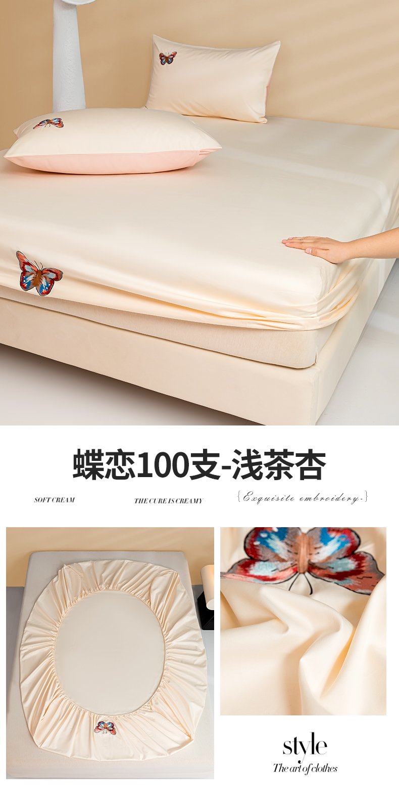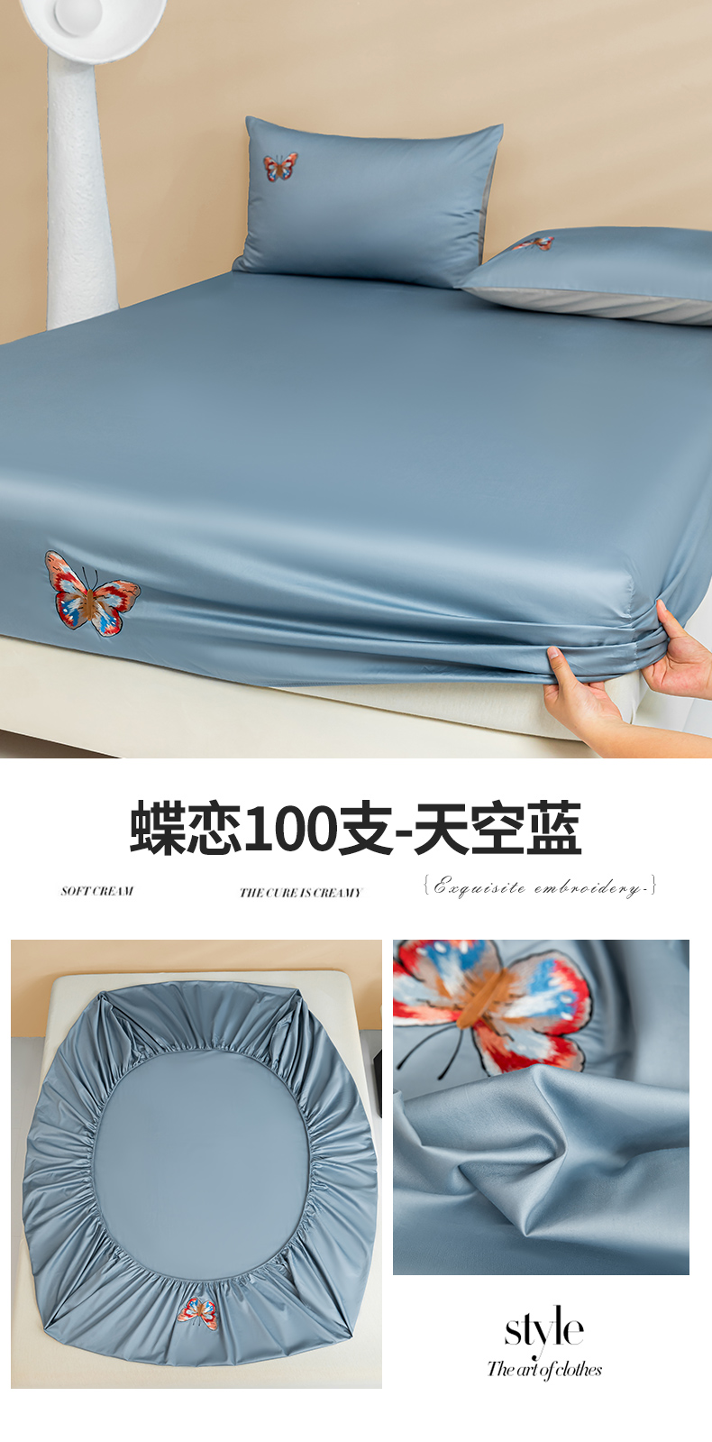(总)蓝米卡夫 2024新款A类100支全棉刺绣蝶恋系列单床笠三件套