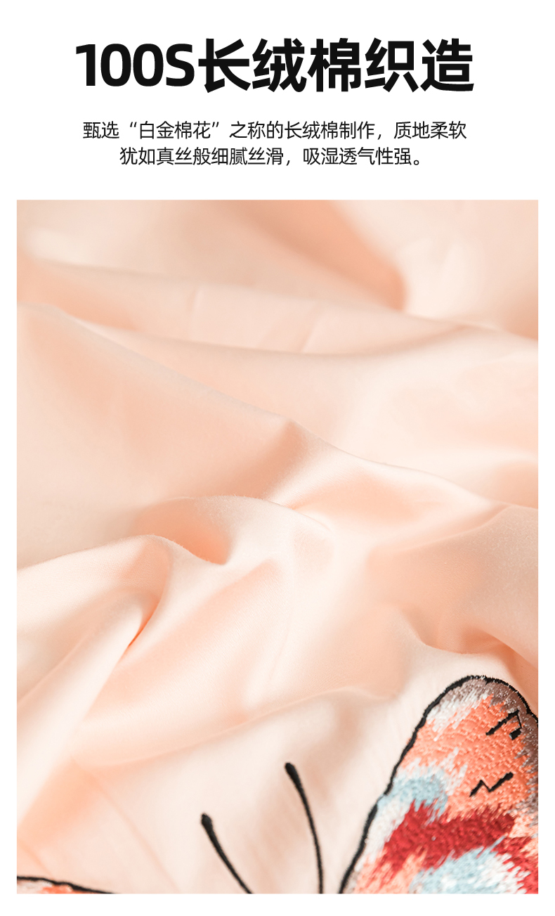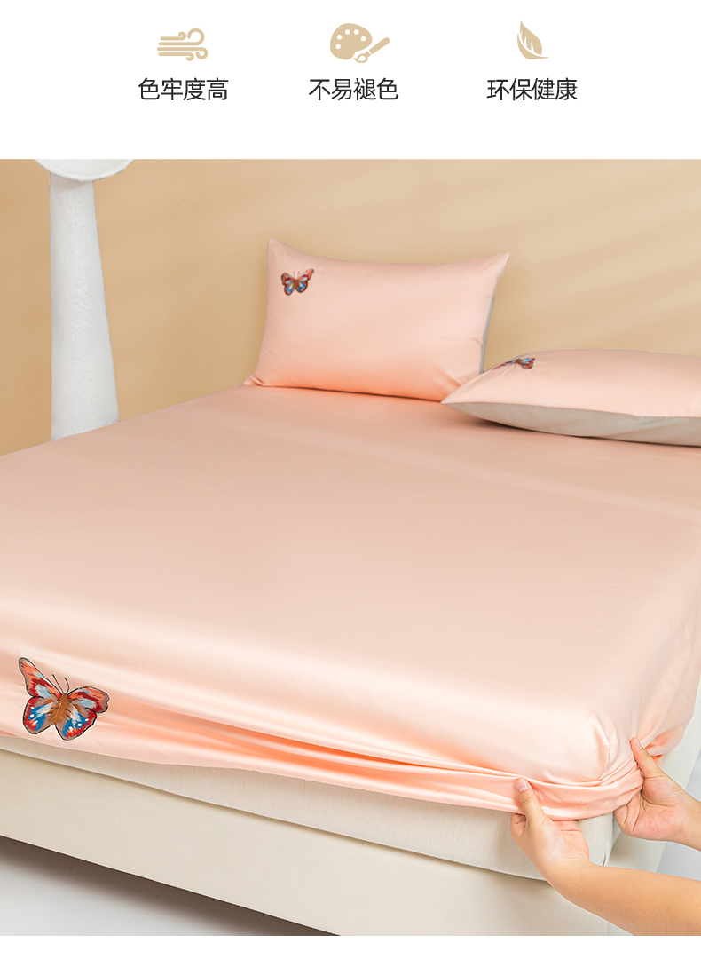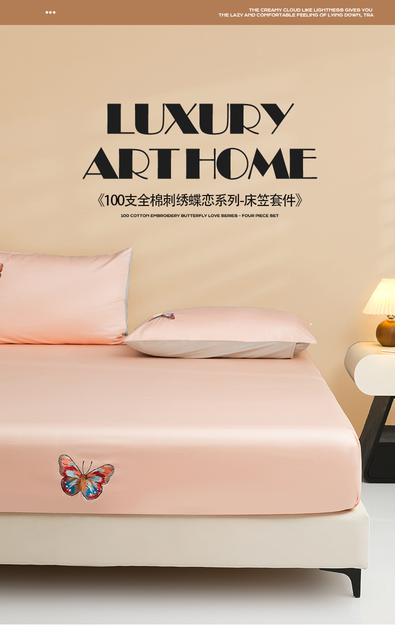 (总)蓝米卡夫 2024新款A类100支全棉刺绣蝶恋系列单床笠三件套