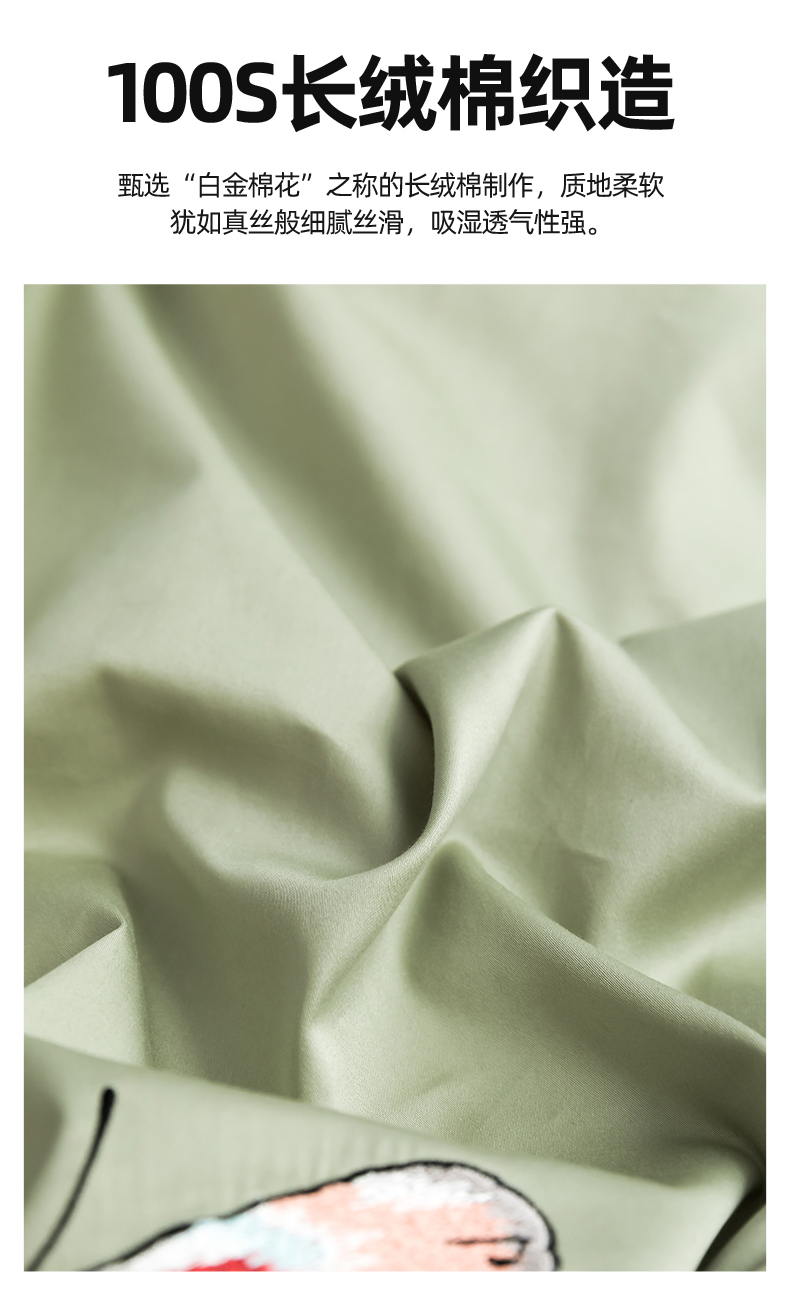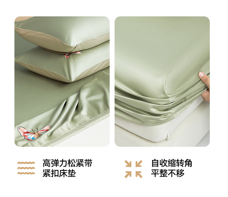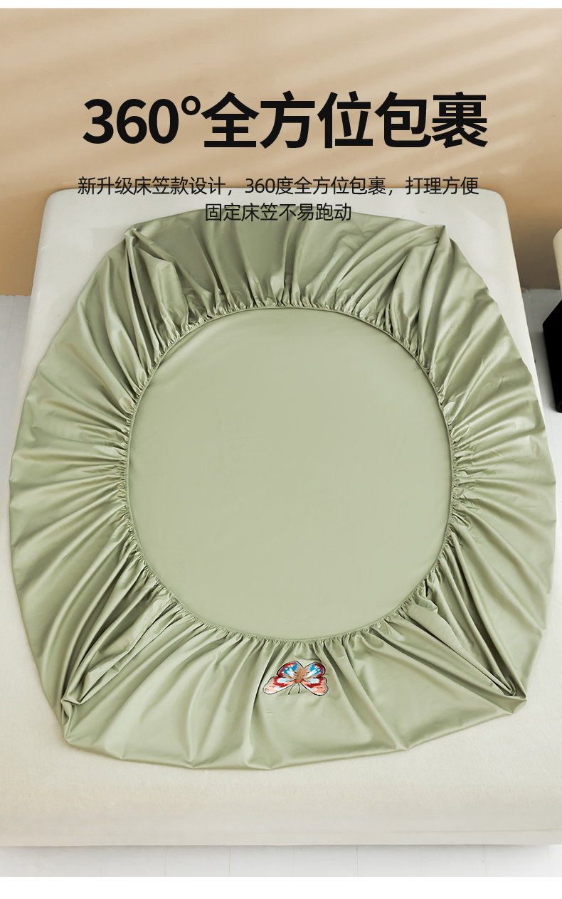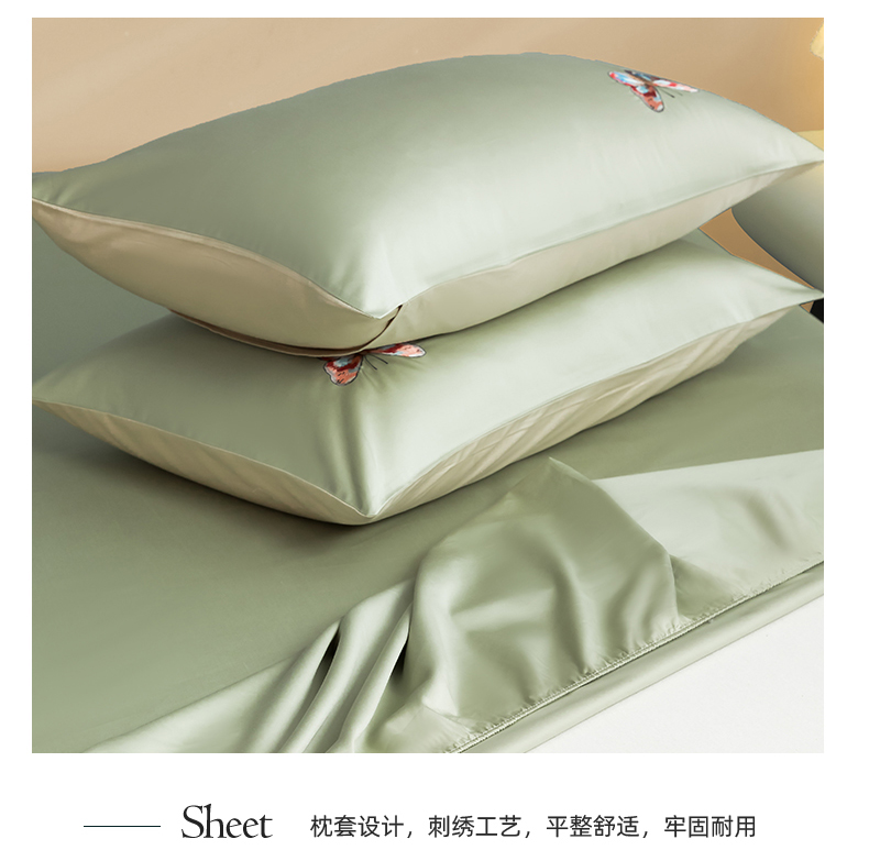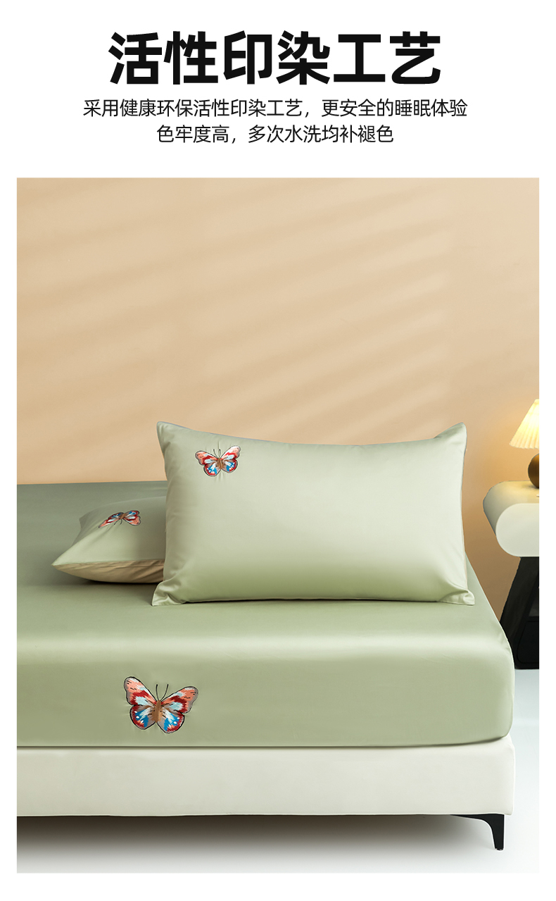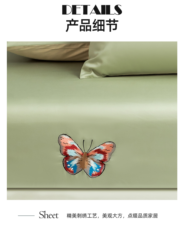 • 91家纺网 家纺一手货源 找家纺 蓝米卡夫 2024新款A类100支全棉刺绣蝶恋系列单床笠三件套 蝶恋100支-莺茶绿