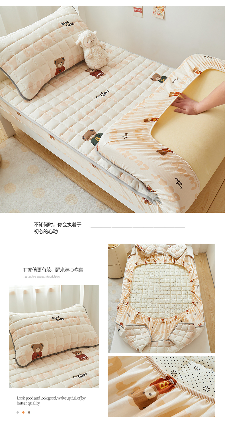 商品名称:花言狐语 2025新款水洗棉夹棉加厚床笠(印花系列)-单人床 耍酷熊