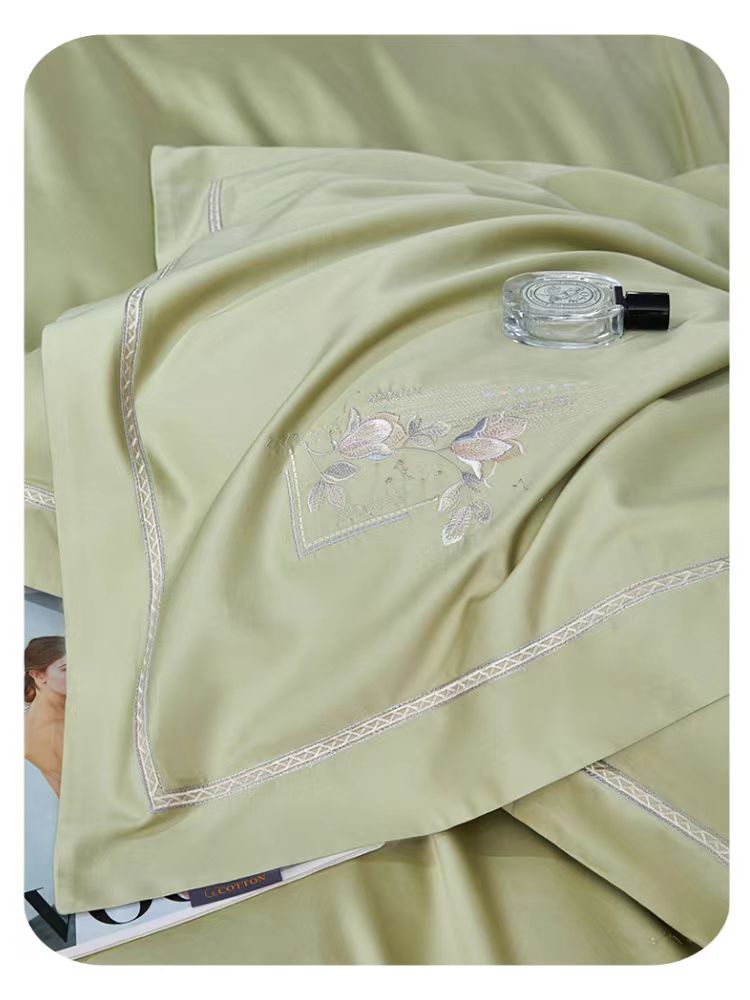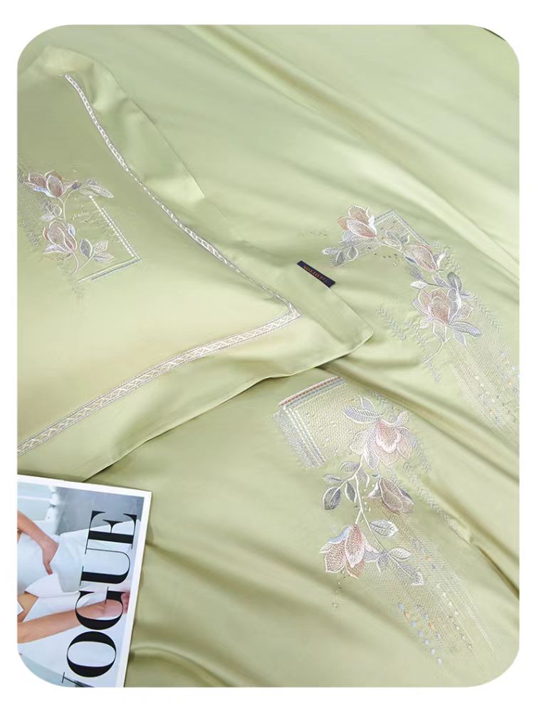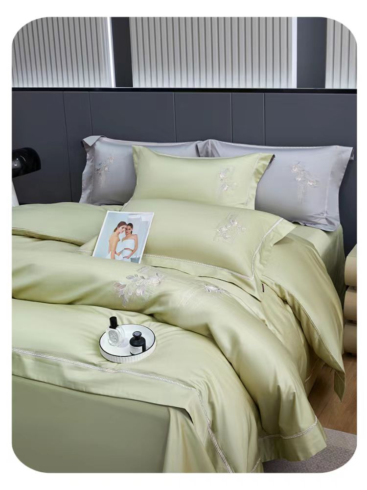 梦丝语家纺秋冬婚庆送礼居家高端100支长绒棉磨毛平绣加毛巾绣四件套,柏拉图-青翠绿
