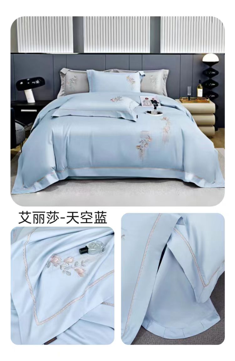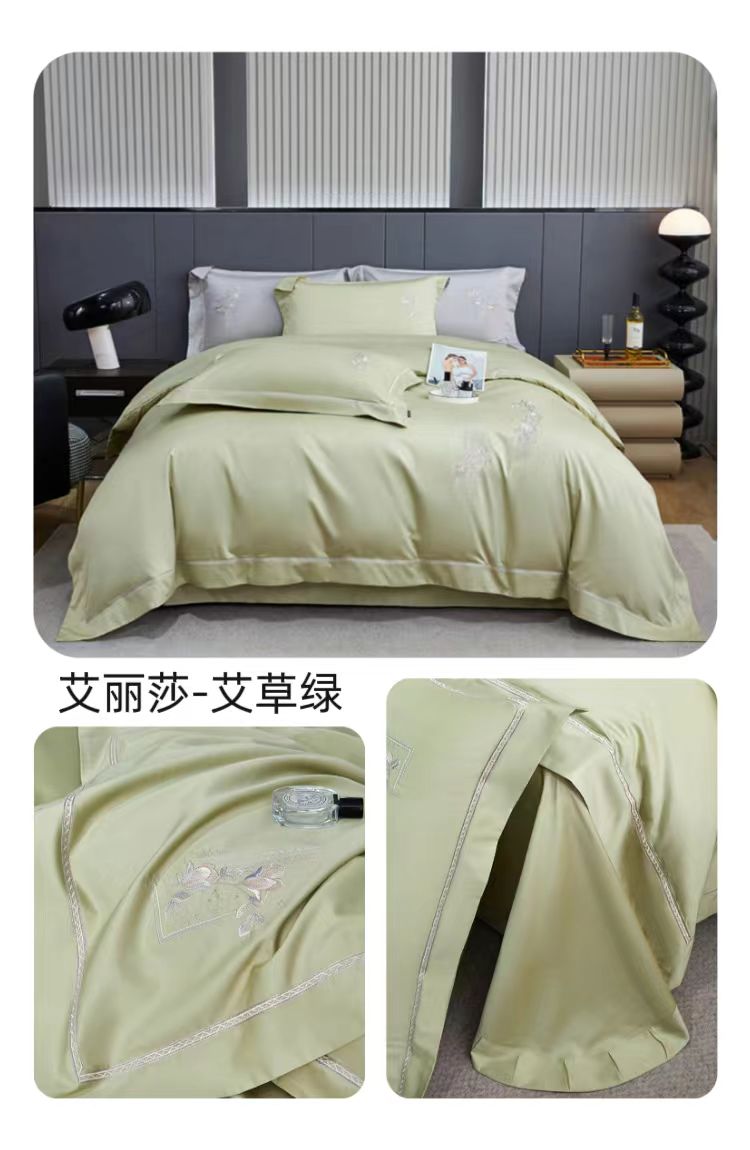 (总)2024婚庆送礼休闲居家50双股棉轻奢高端绣花圆角款四件套新品 ,斯丹里-宾利蓝,斯丹里-优雅灰,斯丹里-粉豆沙,斯丹里-浅天蓝,斯丹里-香宾金,斯丹里-香草绿