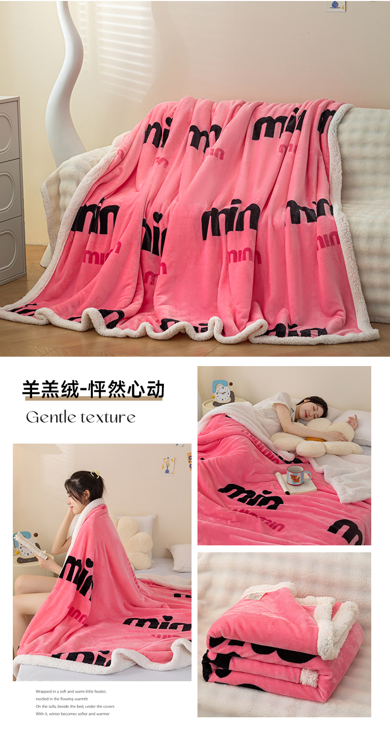 雅萱家纺 2024新款羊羔绒+牛奶绒毛毯披肩毯盖毯 羊羔绒-怦然心动